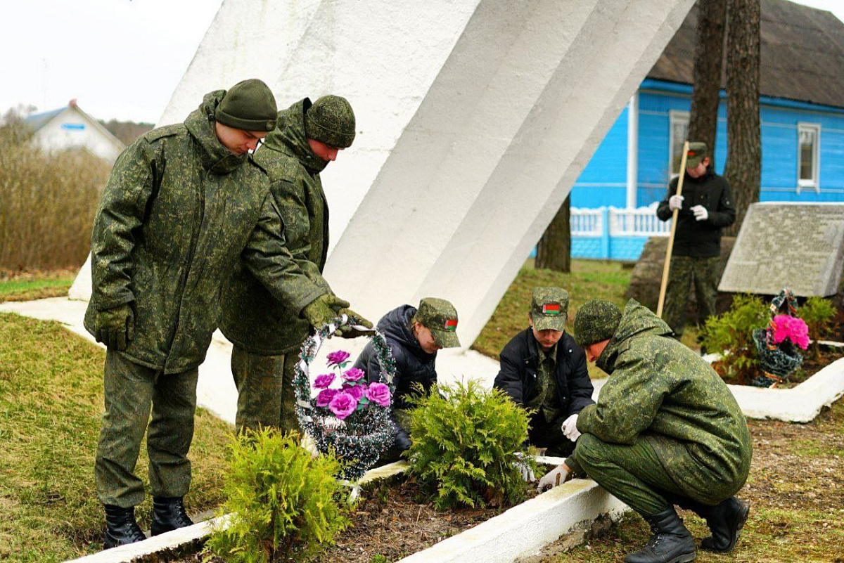 В разных уголках Беларуси военнослужащие вместе с семьями, гражданский персонал, суворовцы, кадеты и воспитанники военно-патриотических клубов приводят в порядок территории.