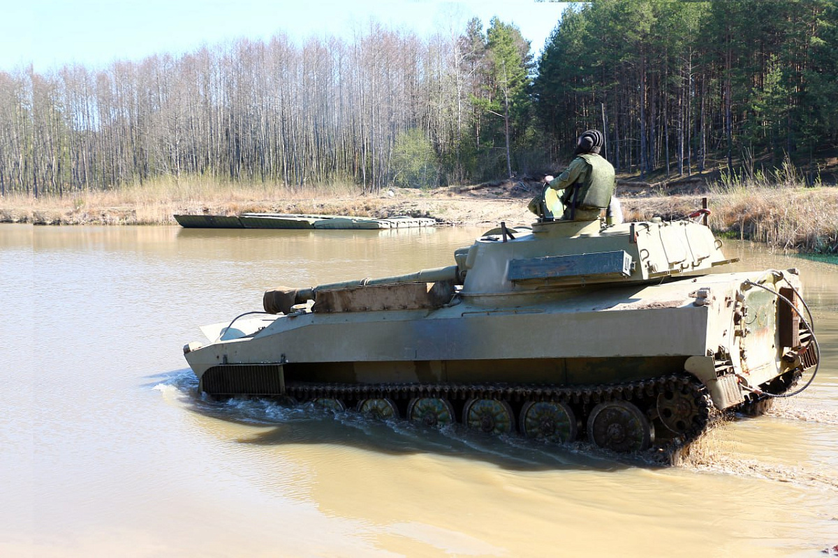 На полигоне 11-й отдельной гвардейской механизированной бригады продолжаются занятия по вождению боевых машин на плаву.