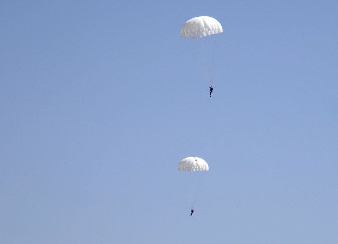 Военнослужащие 5 обрСпН выполнили прыжки с парашютом.
