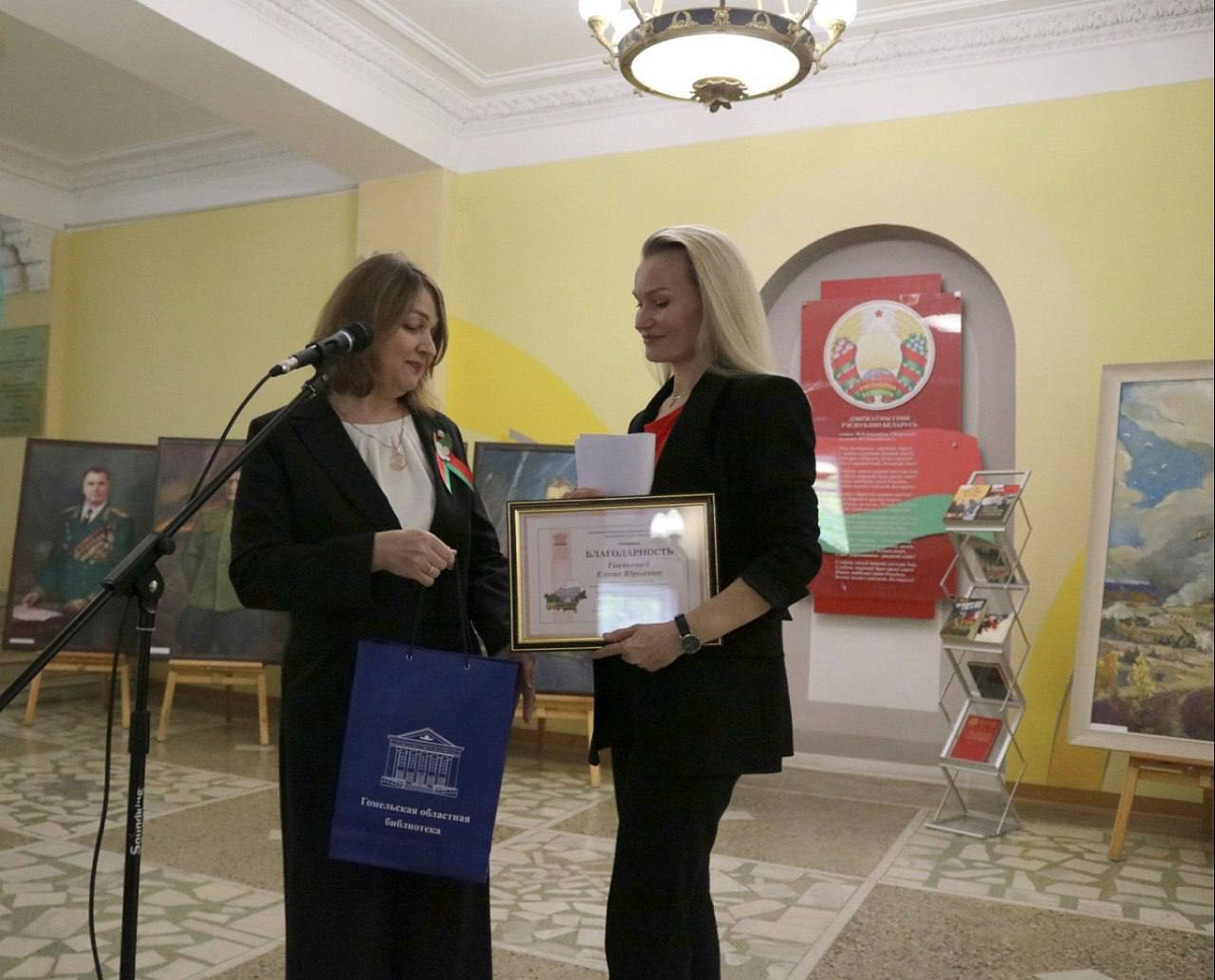 В рамках республиканской акции «Библионочь-2025» и в преддверии празднования 80-летия Великой Победы в Гомельской областной универсальной библиотеке им. В.И. Ленина состоялось торжественное открытие выставочной экспозиции «Подвиг. Мужество. Победа» Студии военных художников при Центральном Доме офицеров Вооруженных Сил Республики Беларусь.