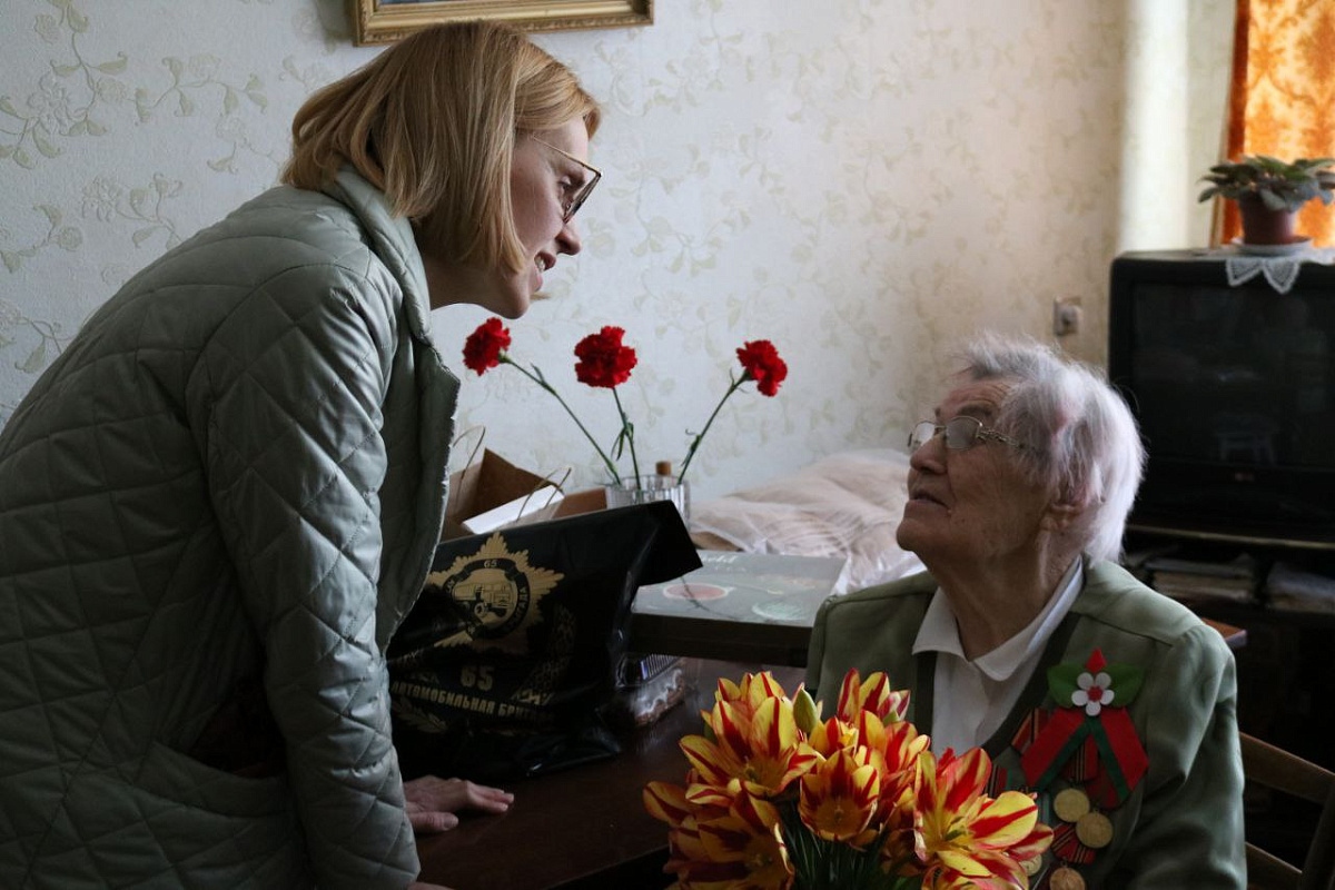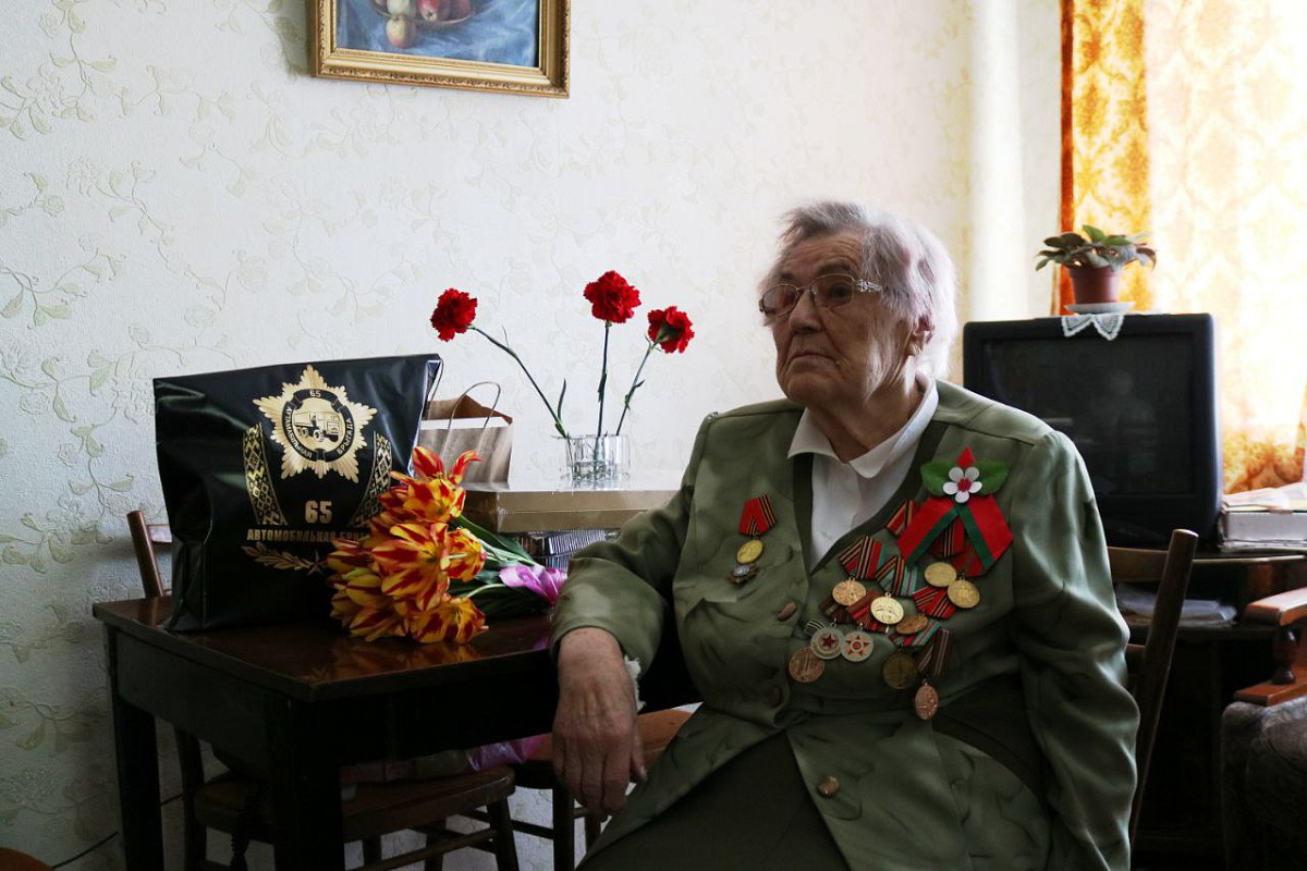 Военнослужащие 65-й автомобильной бригады и активисты БРСМ поздравили ветерана Великой Отечественной войны Веру Шибикину, выразив ей искреннюю признательность за ее подвиг.