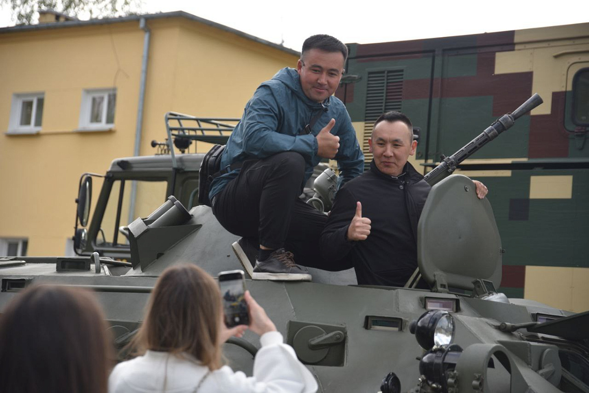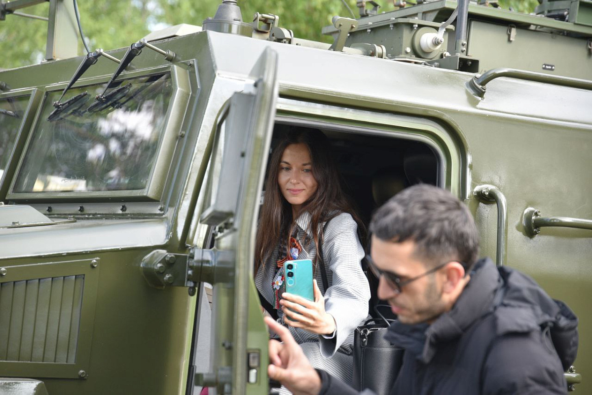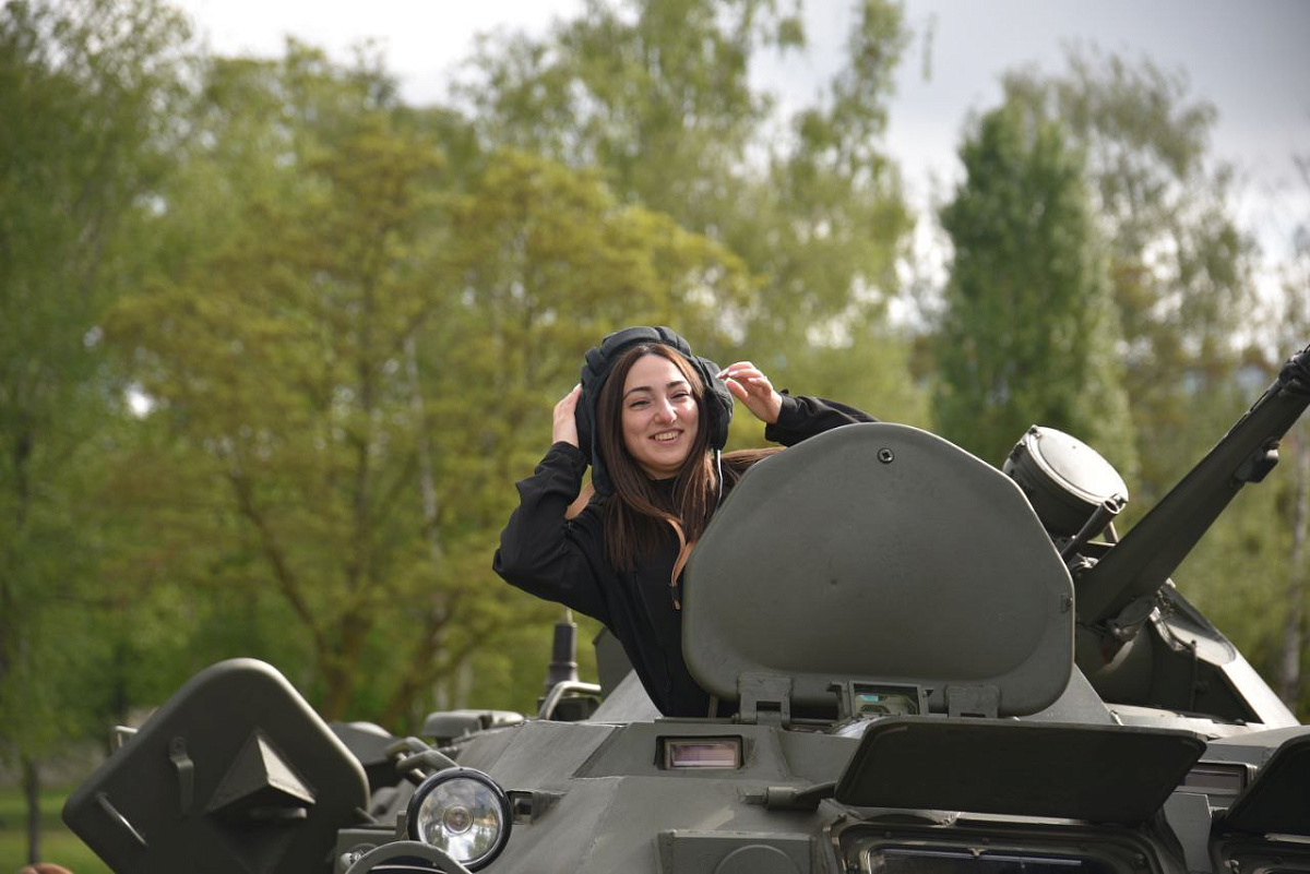 Желающие получили возможность подержать в руках оружие, примерить парашют, а также почувствовать себя членом экипажа БТР.