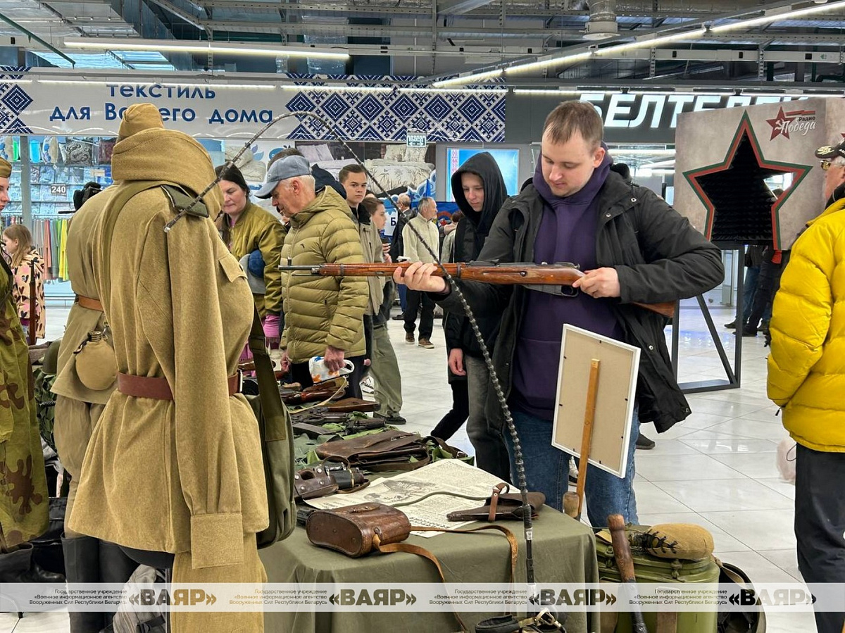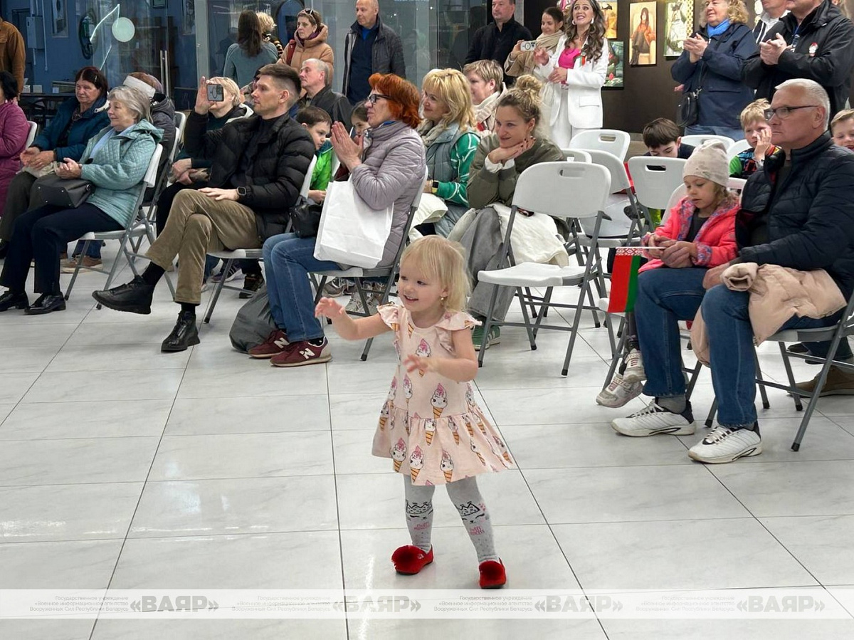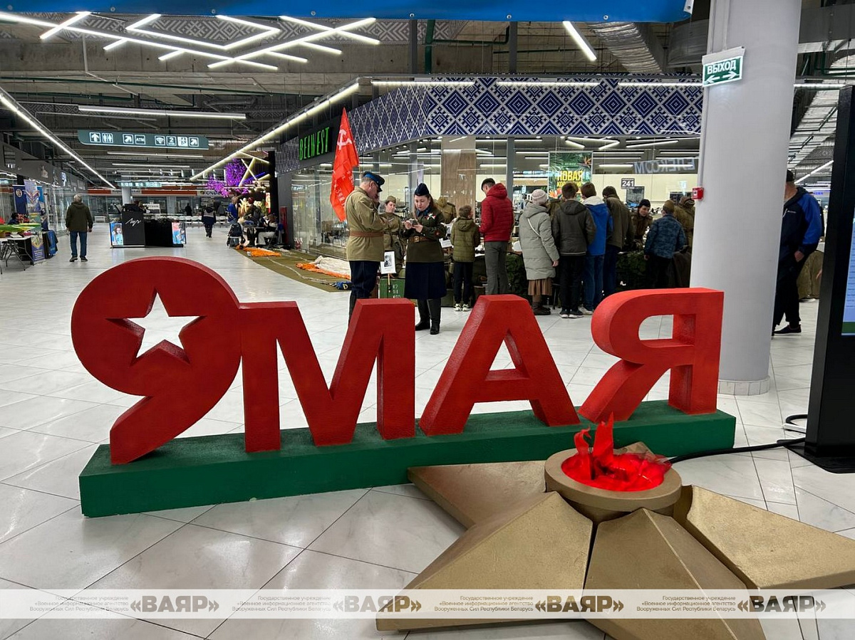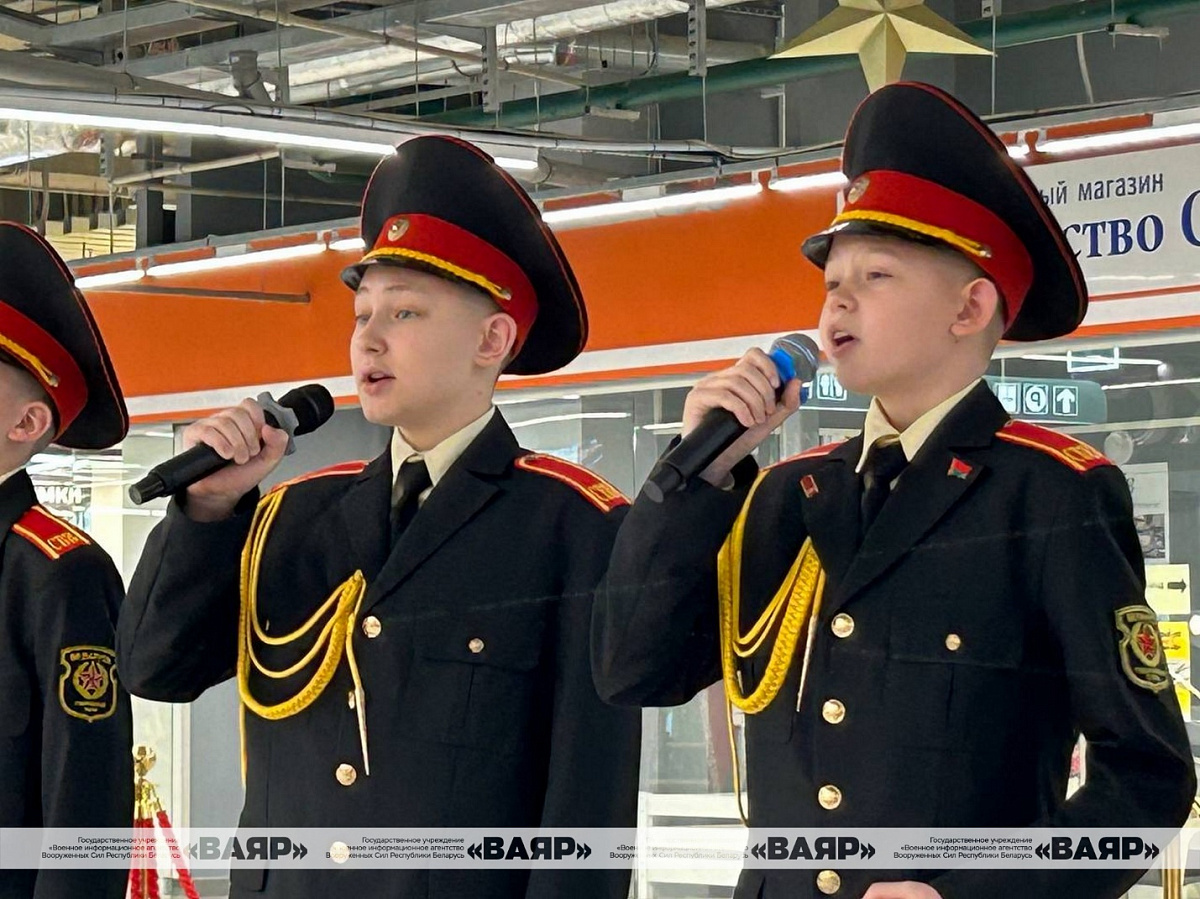 Концертную программу в День Победы для гостей ТЦ «Першы нацыянальны гандлёвы дом» подготовили музыканты народного вокального ансамбля «Концертная группа ВВС и войск ПВО», воспитанники Минского суворовского военного училища, артисты и творческие коллективы ДОСААФ и Первомайского района.