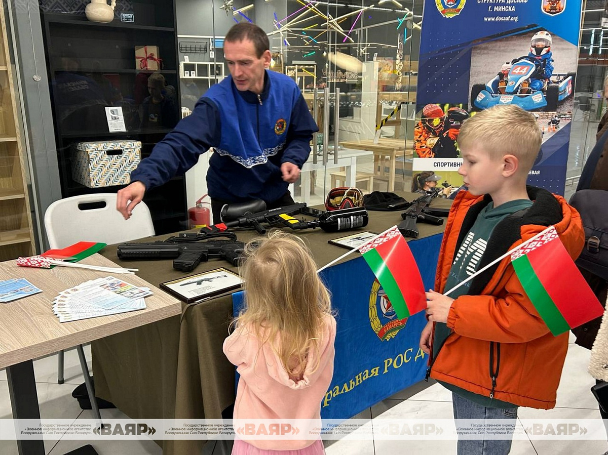 На площадке у ТЦ «Першы нацыянальны гандлёвы дом» развернулась выставка ДОСААФ.