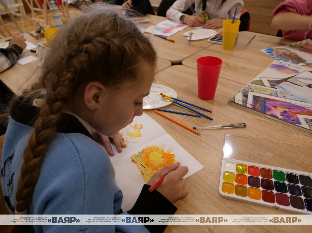 В Центральном Доме офицеров начала работу детская студия изобразительного и декоративного искусства для детей военнослужащих и гражданского персонала Вооруженных Сил Республики Беларусь. Под руководством руководителя Студии военных художников Елены Гостевой ребята 7-13 лет познакомятся с различными техниками изобразительного и декоративного искусства. В рамках работы студии будут проходить мастер-классы по керамике, гобелену, росписи по ткани, дереву, созданию детских мультипликационных фильмов, а также факультативы по истории искусства.