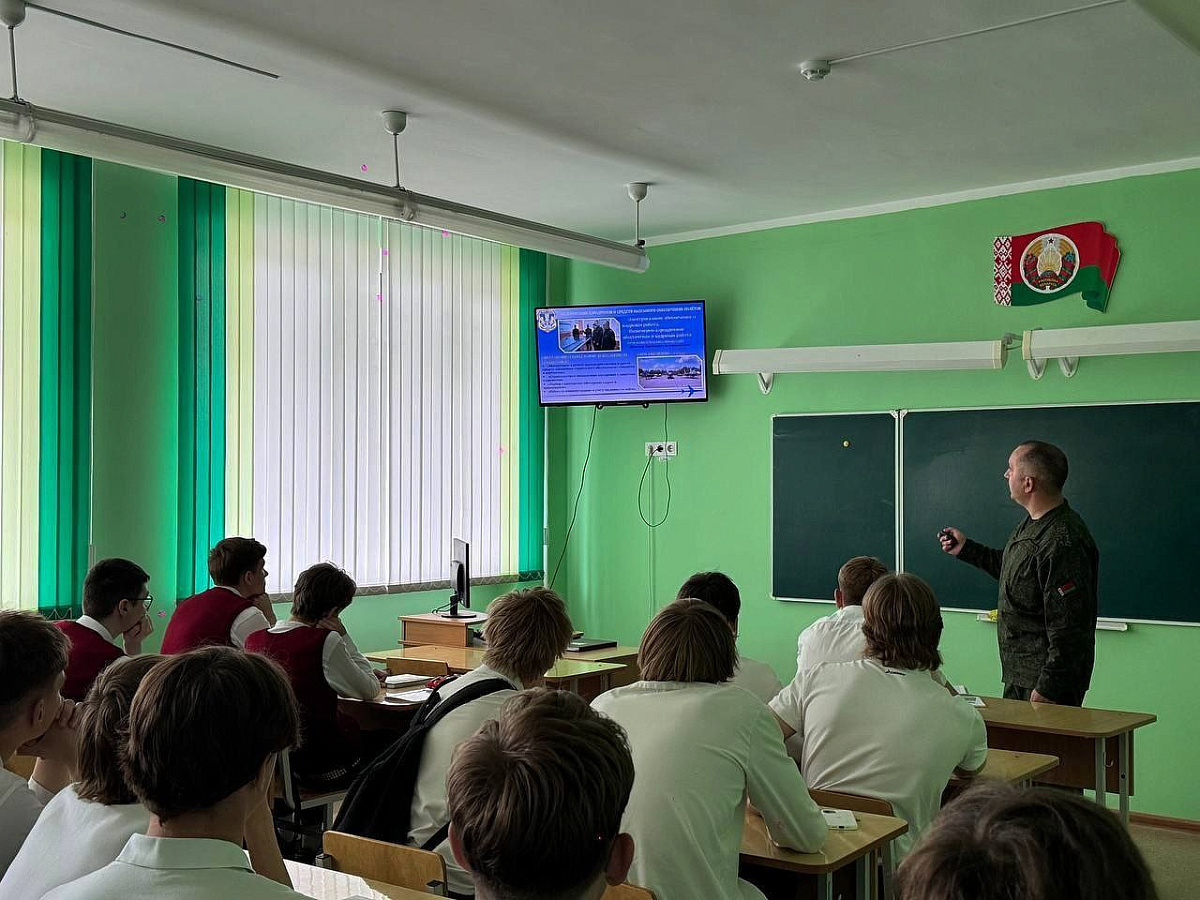 В средней школе № 8 г. Лиды имени В.Ф. Казакова состоялась профориентационная встреча учащихся 10-х классов с военнослужащими военного факультета в Белорусской государственной академии авиации.