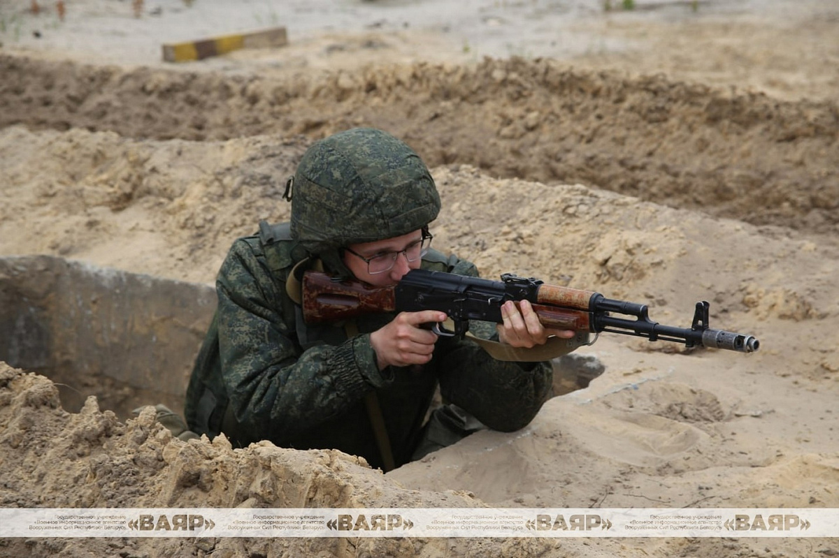 Второй этап занятия проходит на Гожском полигоне. Там в трех учебных зонах личный состав нового пополнения учится действовать в лесисто-болотистой местности и на поле боя, преодолевать препятствия, участки зараженной местности и минно-взрывные заграждения, оказывать медицинскую помощь. Военнослужащие выполняют упражнение учебных стрельб из автомата АК-74, метают ручные гранаты.