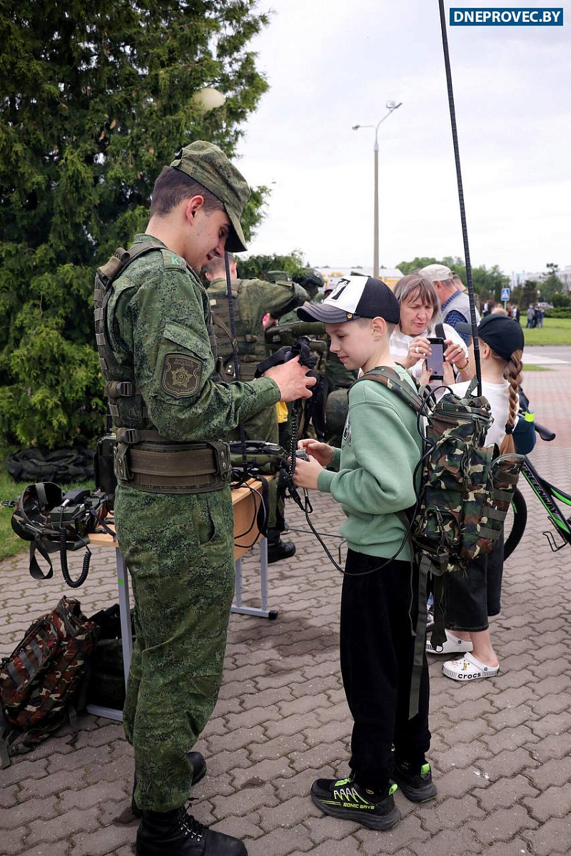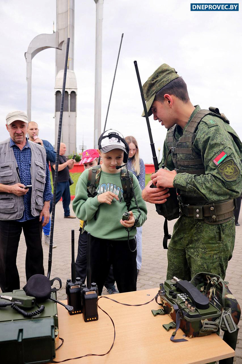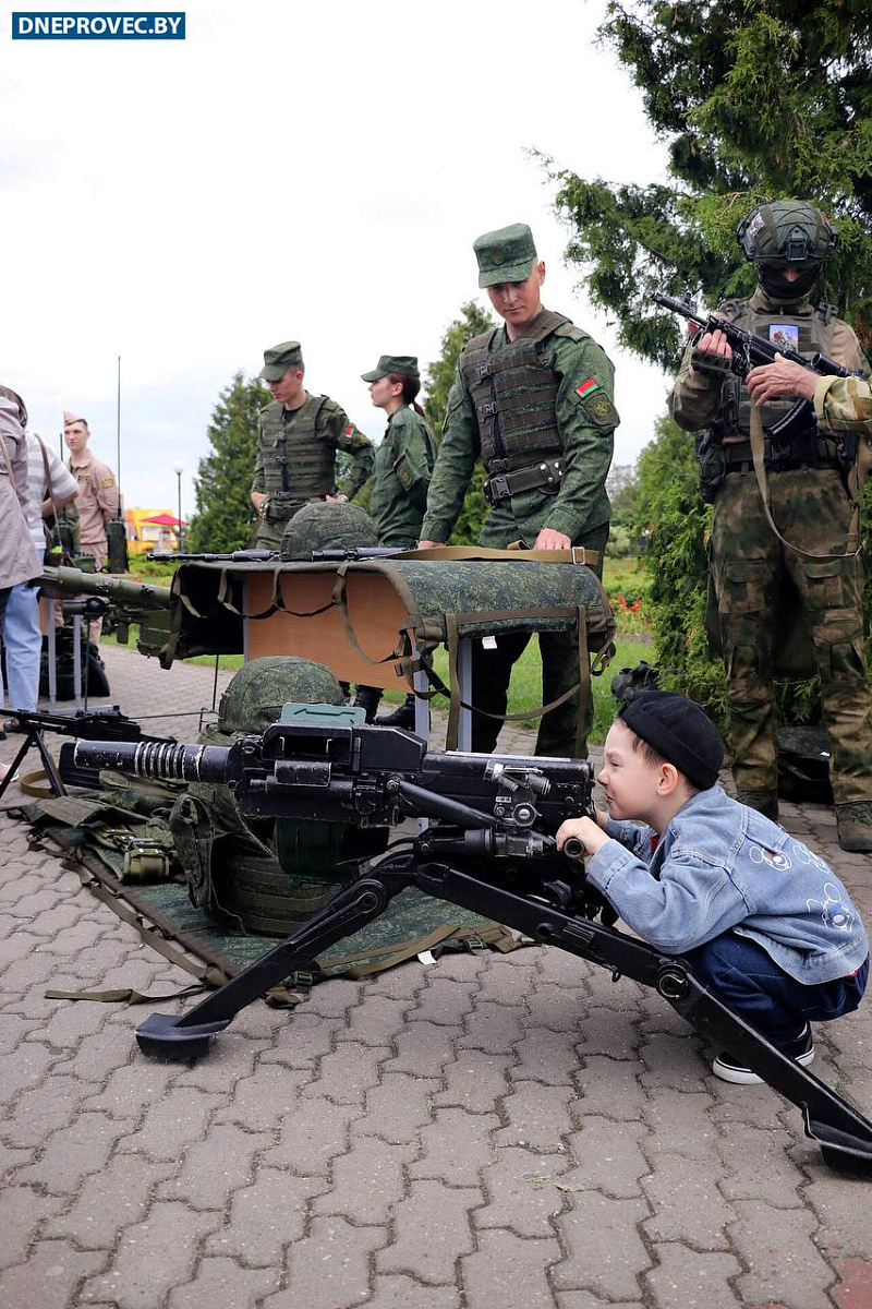 На площадке около часовни Евфросинии Полоцкой военнослужащие Вооруженных Сил организовали для жителей и гостей города выставку стрелкового оружия, интерактивные зоны и площадки.