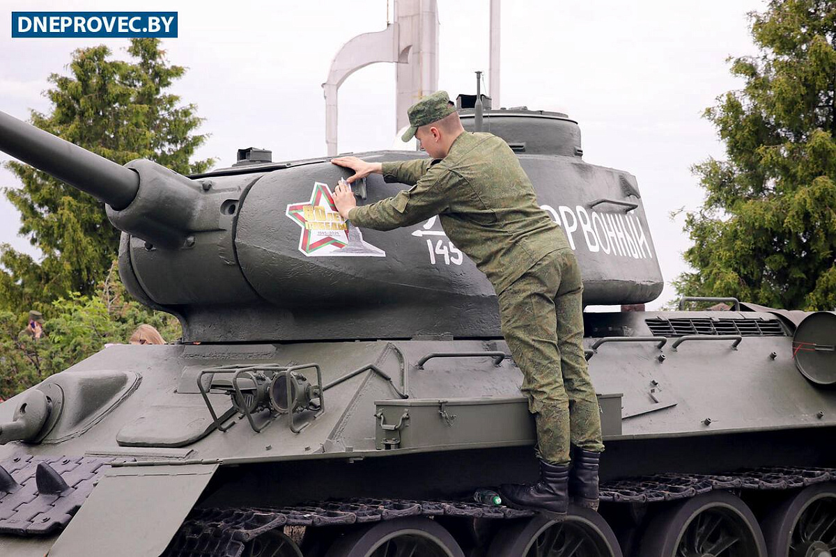 Инициированная Вооруженными Силами Республики Беларусь акция «Марш Победы» продолжает шагать по стране. Сегодня легендарные советские танки Т-34 остановились в городе Речица.