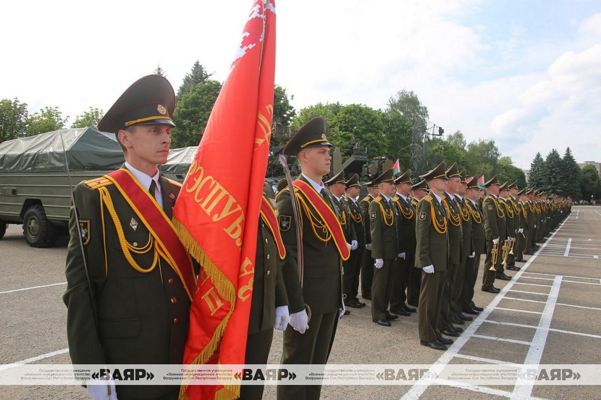 Боевое Знамя и Грамоту Президента Республики Беларусь командиру 62 зрп полковнику Владимиру Марченко вручил командующий войсками Западного оперативного командования генерал-майор Вадим Суров.