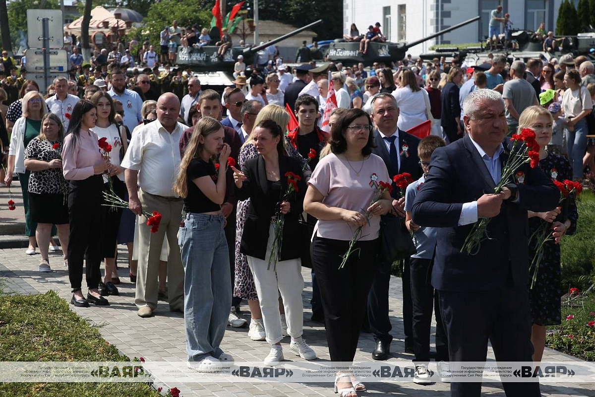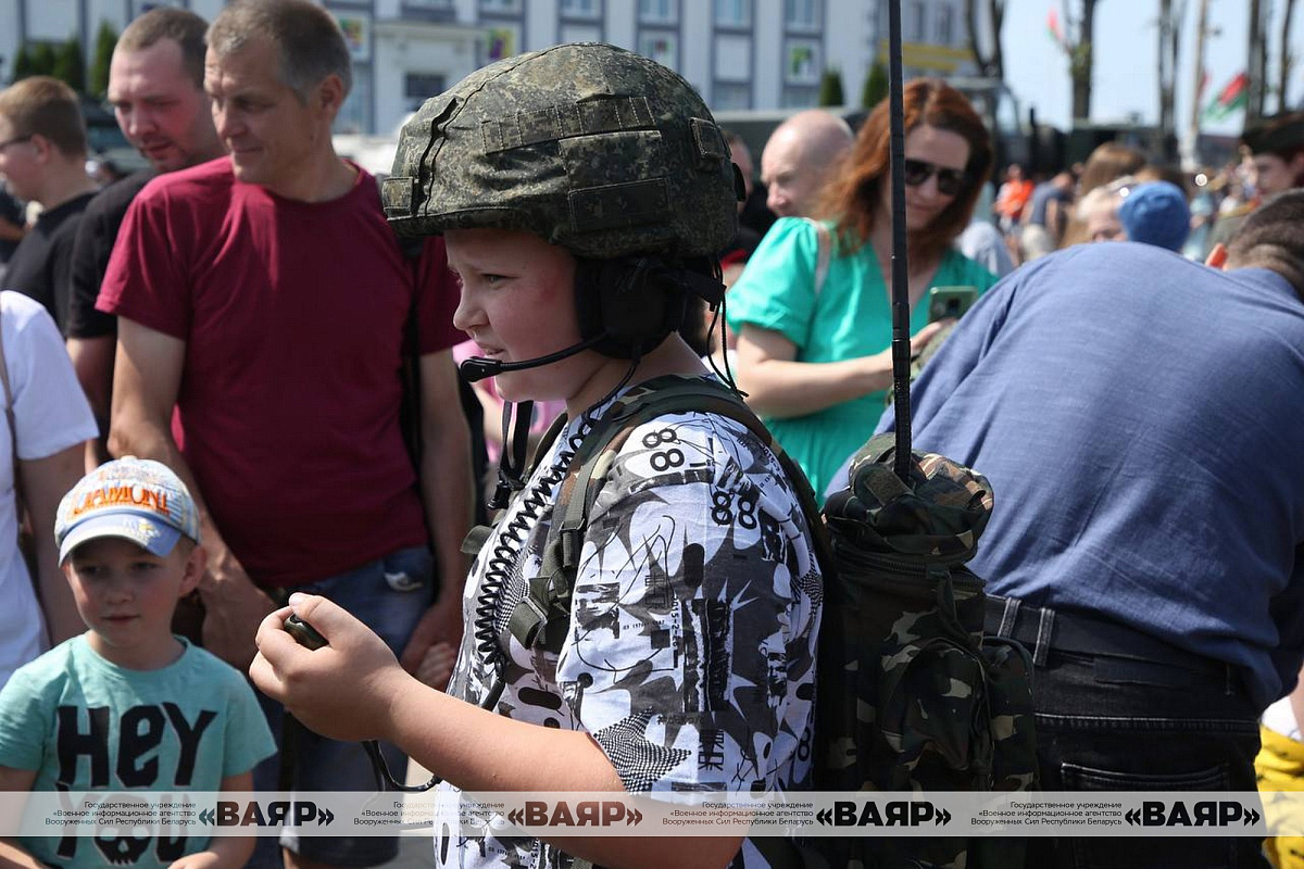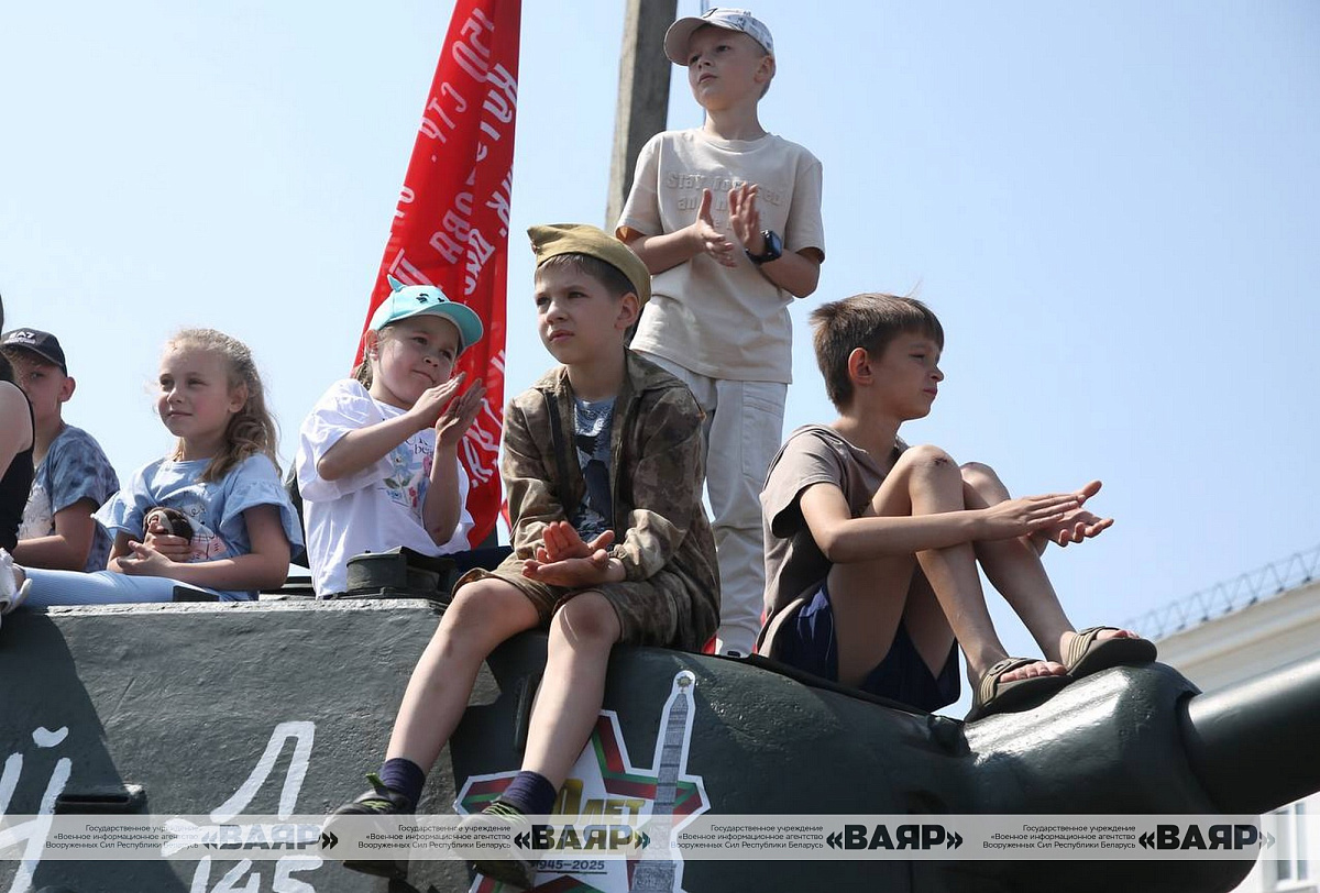 Военнослужащие организовали тематические площадки, выставку вооружения и военной техники. Курсанты Военной академии Беларуси провели показательное выступление. Сотни горожан пришли увидеть легендарную технику, сфотографироваться, узнать больше о Вооруженных Силах и почувствовать связь поколений победителей и их наследников.