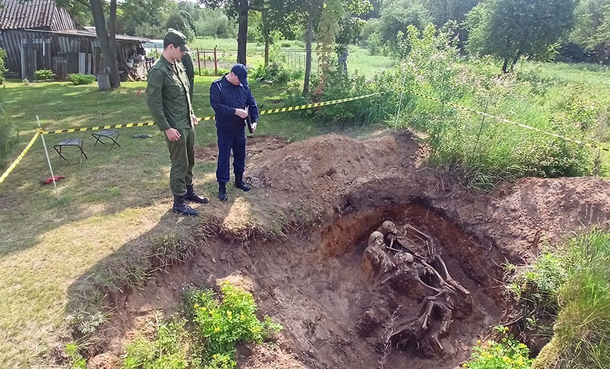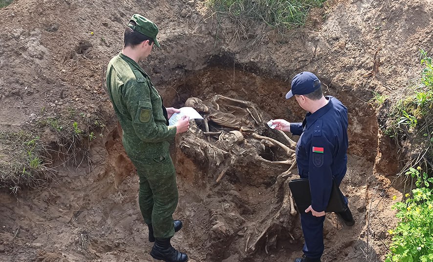 Военнослужащие 52-го отдельного специализированного поискового батальона провели полевые работы на окраине деревни Крапивно Сморгонского района, где обнаружили неизвестное захоронение мирных жителей, погибших от рук немецко-фашистских захватчиков в годы Великой Отечественной войны.