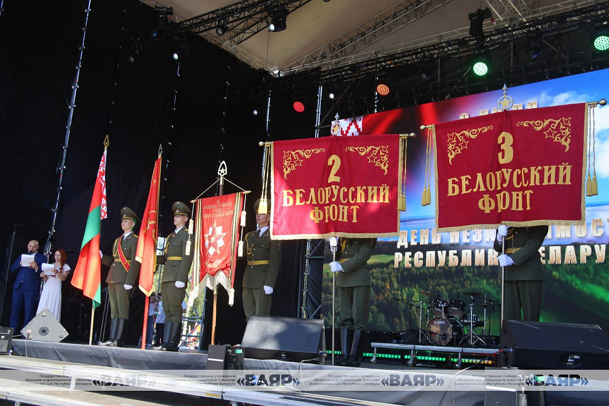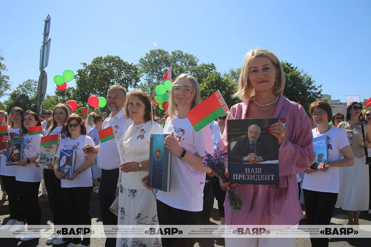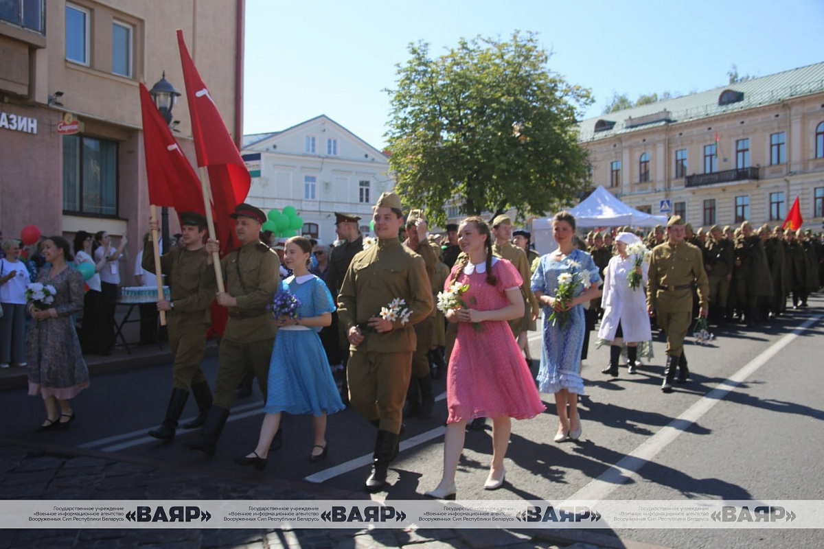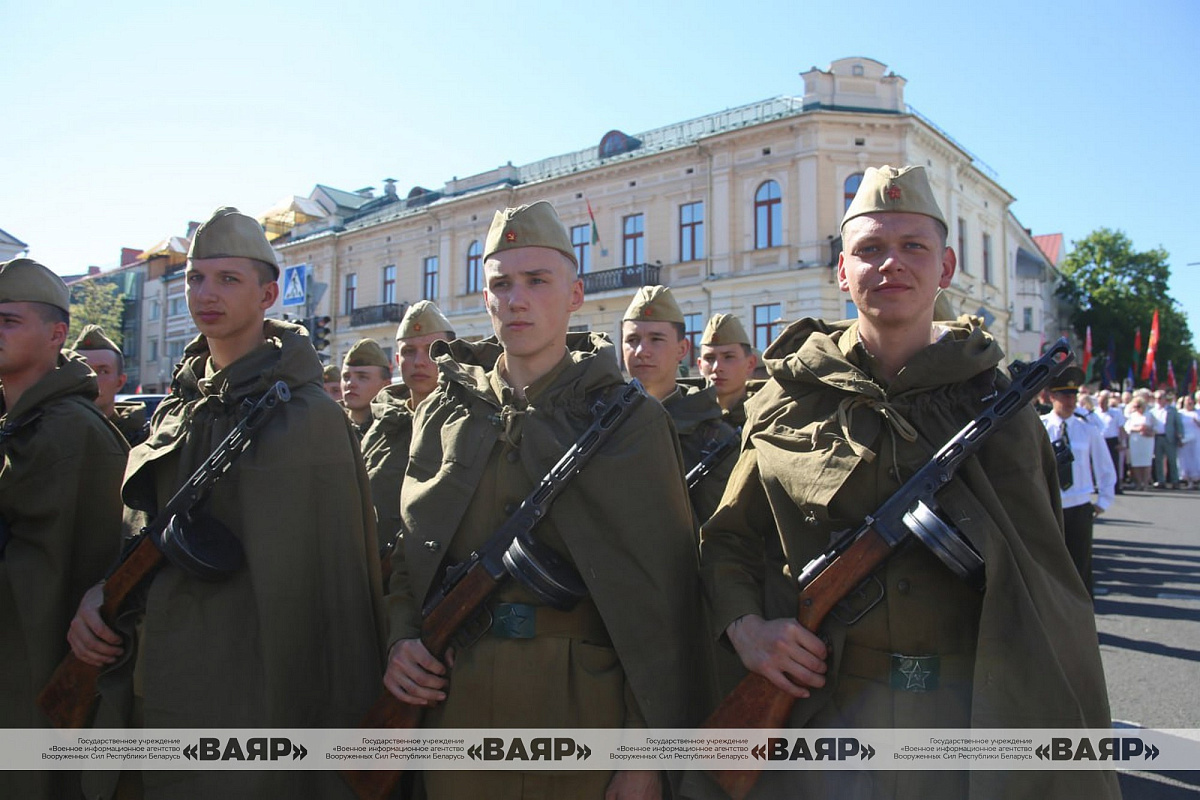 В шествии приняли участие руководители региона и областного центра, командование Гродненского гарнизона, ветераны, колонны трудовых коллективов, деятели культуры, спортсмены. По традиции, во главе огромной людской реки военнослужащие несли штандарты 2-го и 3-го Белорусских фронтов, освободивших Гродно в ходе Белорусской стратегической наступательной операции «Багратион» в июле 1944 года, вымпел «За мужество и стойкость в годы Великой Отечественной войны» и огромное полотнище Государственного флага Республики Беларусь. За ними прошагали коробки военнослужащих в форме одежды военной поры и нынешнее поколение защитников Отечества.