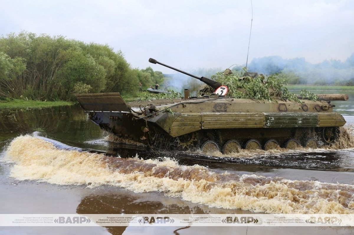 Курсанты общевойскового и факультета военной разведки прошли участок реки на БМП-2.