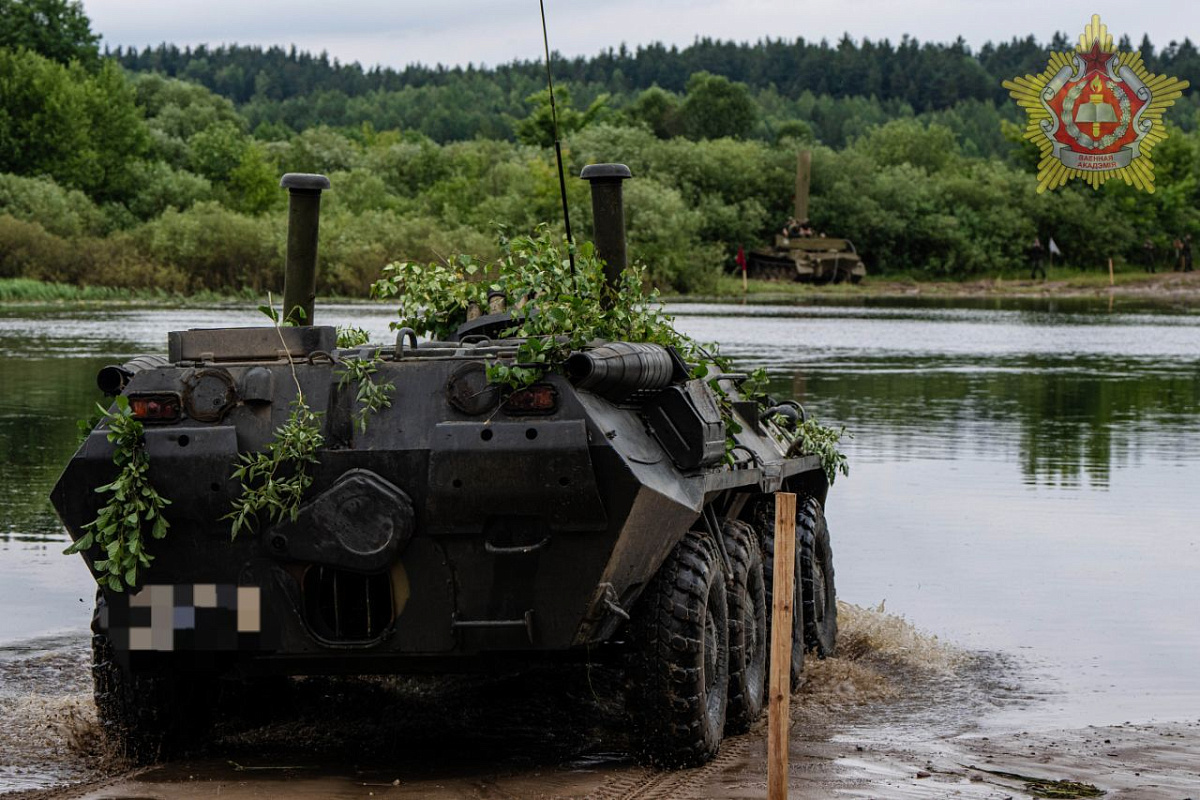 Курсанты Военной академии Республики Беларусь преодолели водную преграду на БМП-2, БТР-80 и танке Т-72Б.