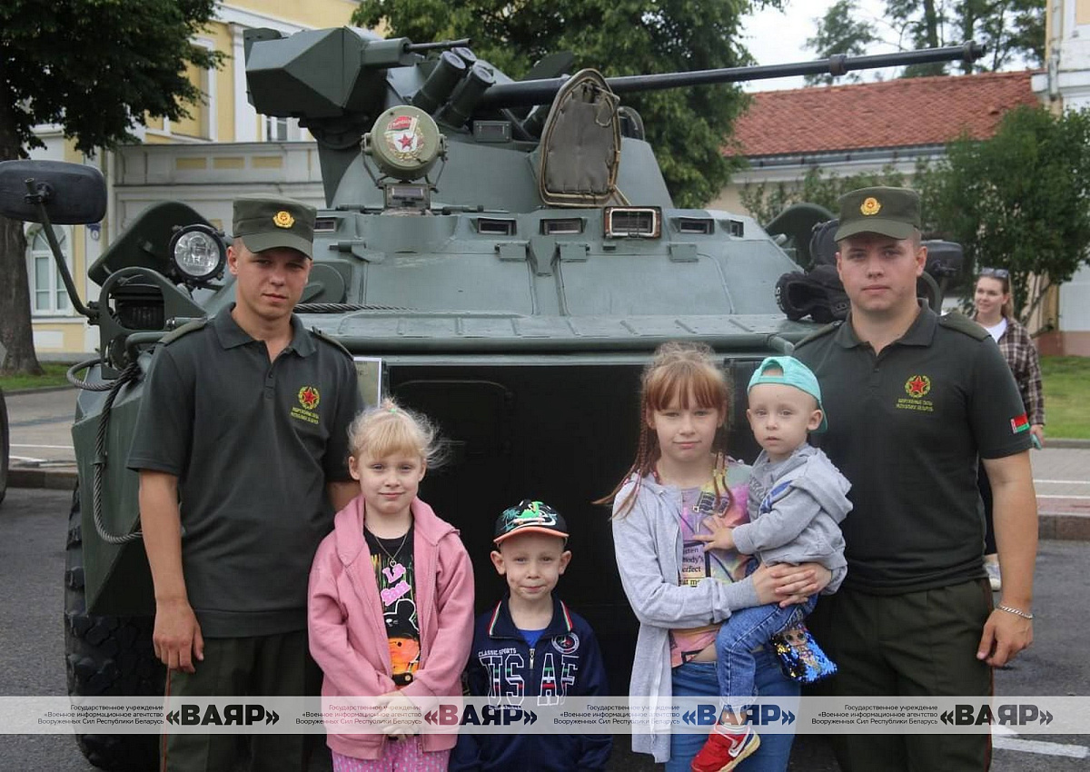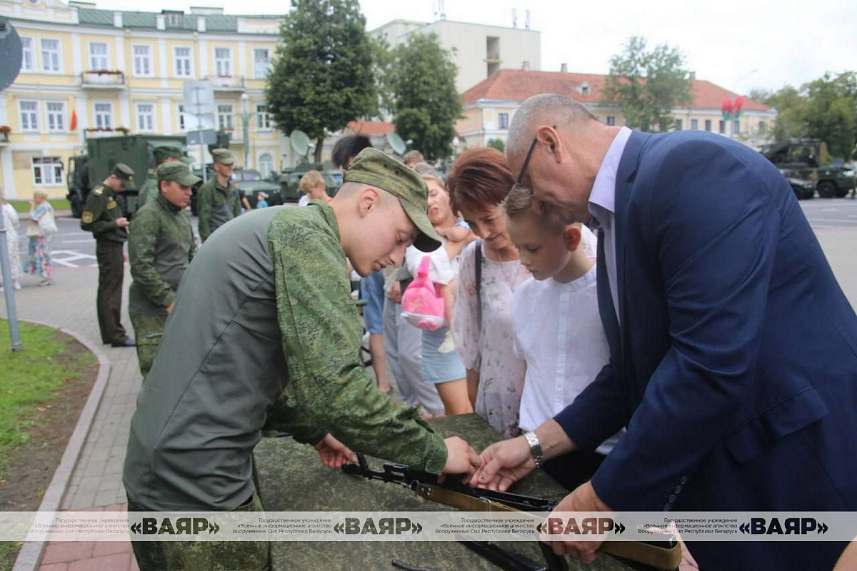 Военнослужащие Гродненского гарнизона подготовили выставку вооружения, военной и специальной техники и угостили гостей праздника солдатской кашей.