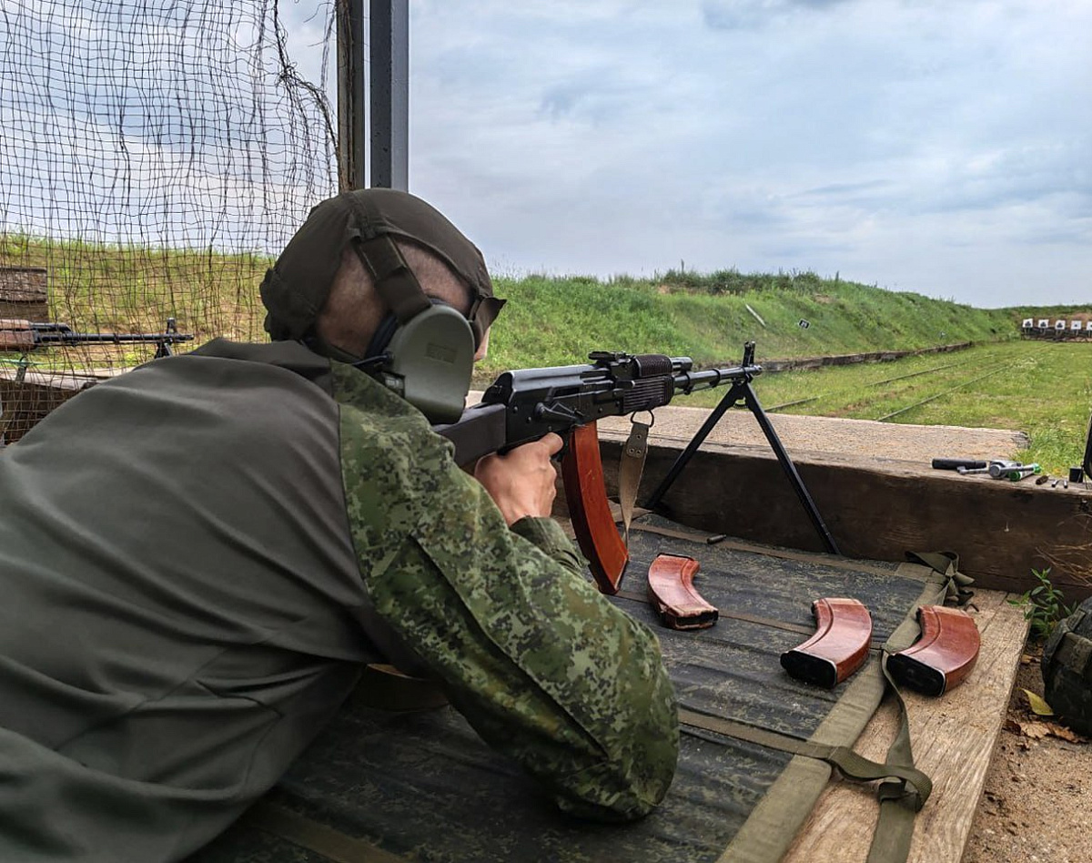 Военнослужащие 8 ртбр практикуются на занятиях по огневой подготовке.