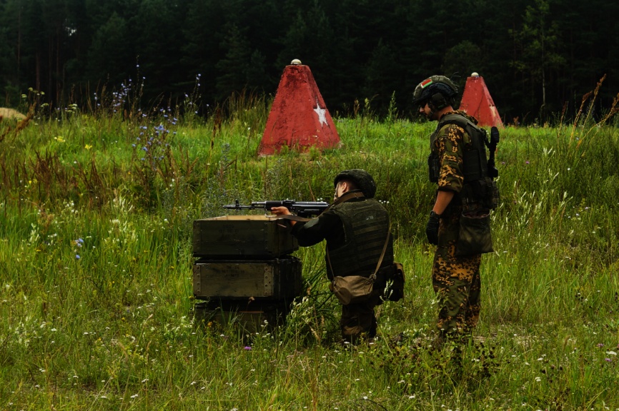С военнослужащими разведывательных подразделений 120-й и 19-й отдельных гвардейских механизированных бригад проходят занятия по боевой подготовке на Лепельском полигоне.