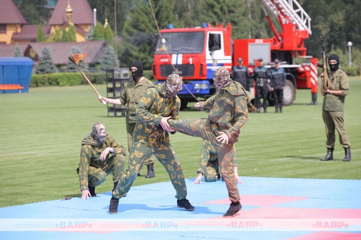 Аплодировали гости и жители Слуцка и показательному выступлению военнослужащих 30 ождбр, которые продемонстрировали приемы рукопашного боя. Понравилось гостям и выступление специалистов кинологического центра Вооруженных Сил.