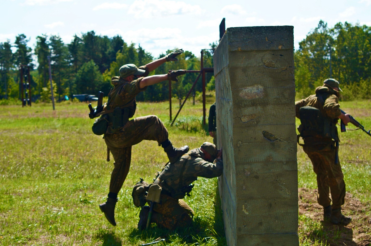 Завершающим этапом было преодоление водной преграды, прохождение тропы разведчика, проход через минно-взрывное заграждение, выполнение стрельбы.