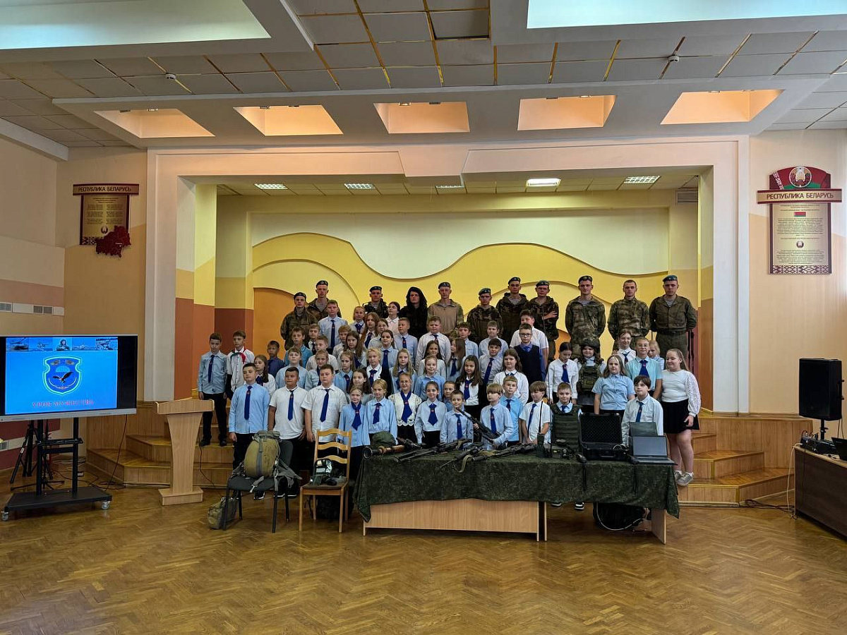 Военнослужащие 38-й Брестской отдельной гвардейской десантно-штурмовой бригады проводят для школьников в разных уголках Беларуси урок «Эстафета поколений: сохраняя прошлое, создаем будущее».
