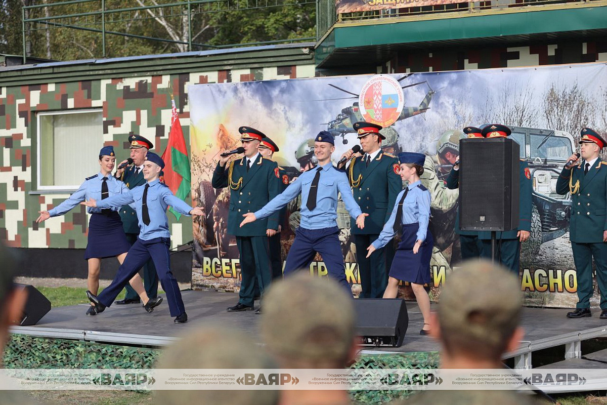 В преддверии старта совместного стратегического учения вооруженных сил Беларуси и России «Запад-2025» на полигоне под Борисовом состоялся праздничный концерт.