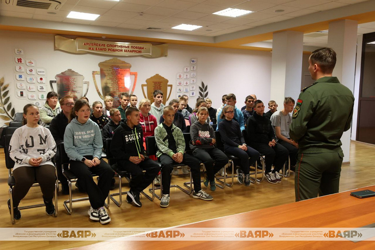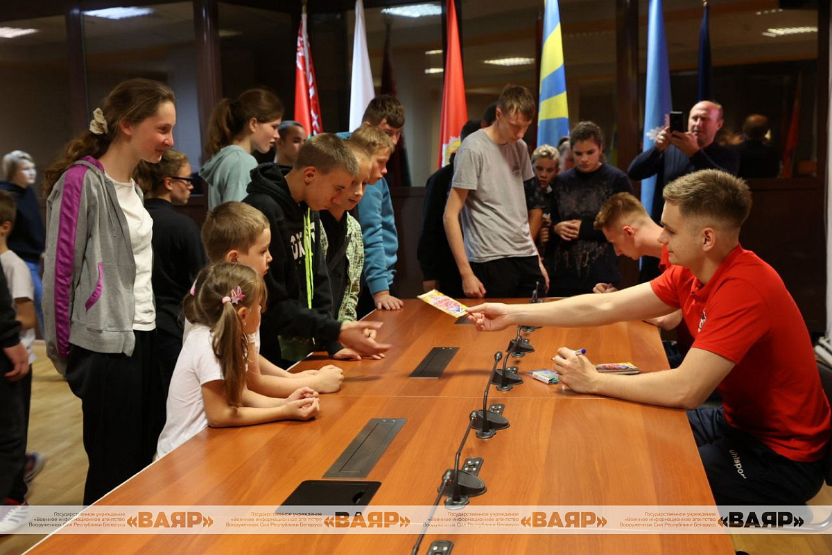 Заместитель командира спортивной роты государственного учреждения «Спортивный комитет Вооруженных Сил Республики Беларусь» по идеологической работе старший лейтенант Вадим Белоусов ознакомил гостей с историей Дворца игровых видов спорта «Уручье», рассказал об успехах армейских спортсменов в республиканских и международных соревнованиях. Также дети пообщались со спортсменами гандбольного клуба «СКА-Минск».