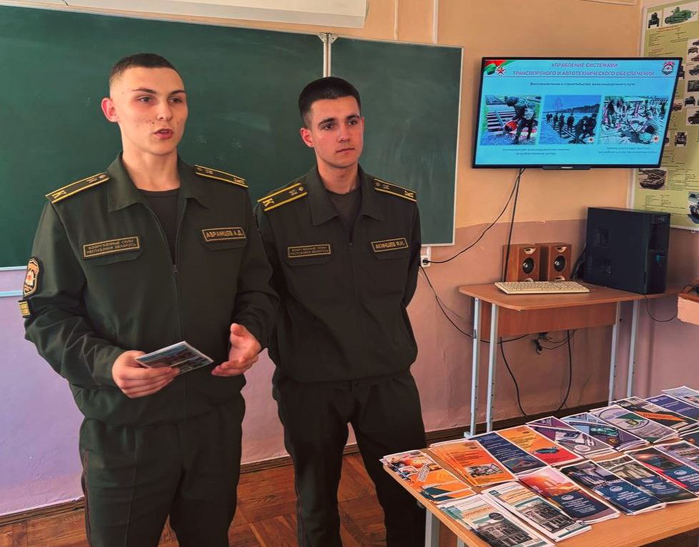 Школьникам рассказали о порядке поступления, прохождении медицинской комиссии, организации повседневной деятельности курсантов, преимуществах службы в Вооруженных Силах Республики Беларусь.