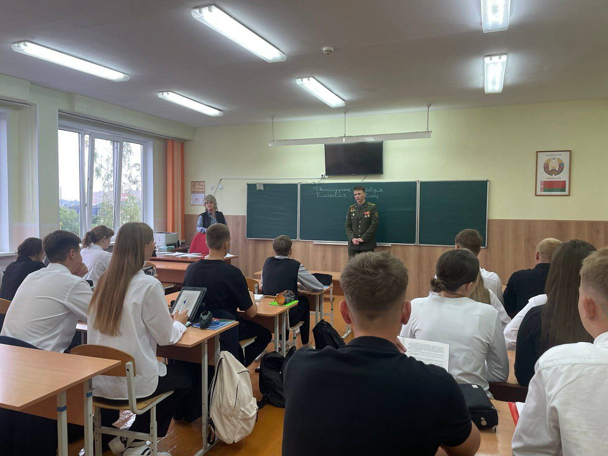 Курсанты военного факультета в Белорусской государственной академии авиации продолжают посещать учреждения образования их родного города для проведения агитационных работ.