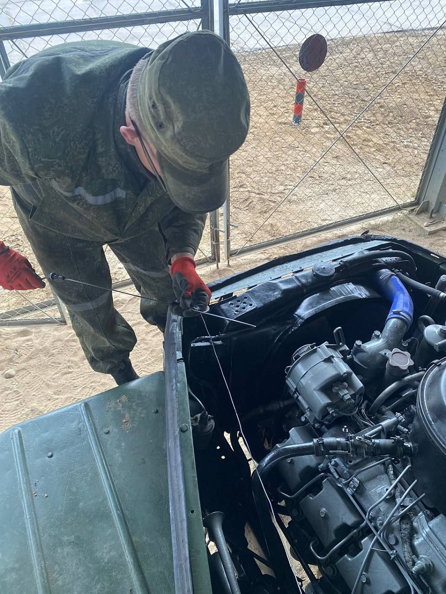 Личный состав выполняет сезонное обслуживание: проверку узлов, замену технических жидкостей, утепление агрегатов и подготовку к работе в условиях низких температур.