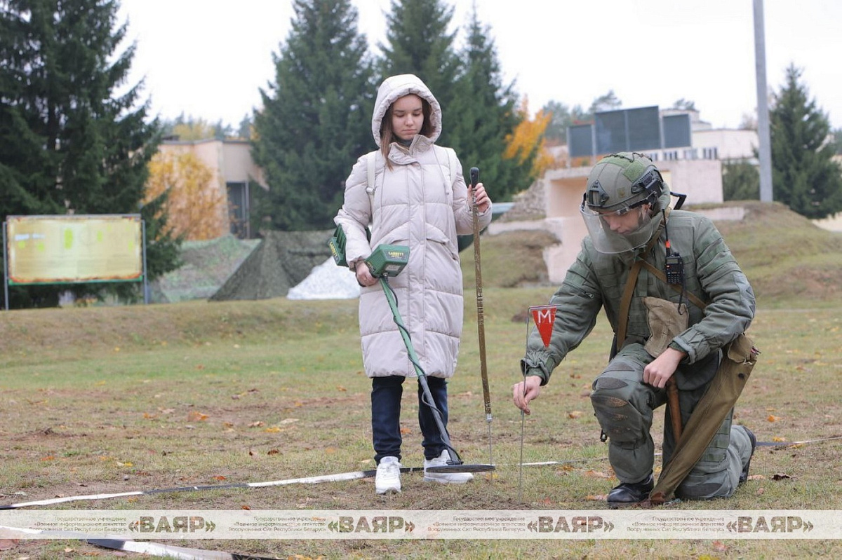 Учащиеся смогли попробовать себя в роли сапера, а также сфотографировались со служебными собаками.