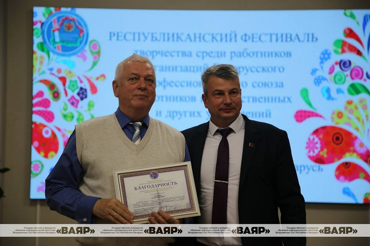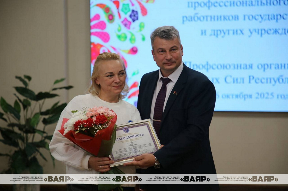 В завершение мероприятия председатель Объединенной отраслевой профсоюзной организации Вооруженных Сил Республики Беларусь Белорусского профессионального союза работников государственных и других учреждений полковник запаса Олег Копыл выразил благодарность участникам и наградил их грамотами.