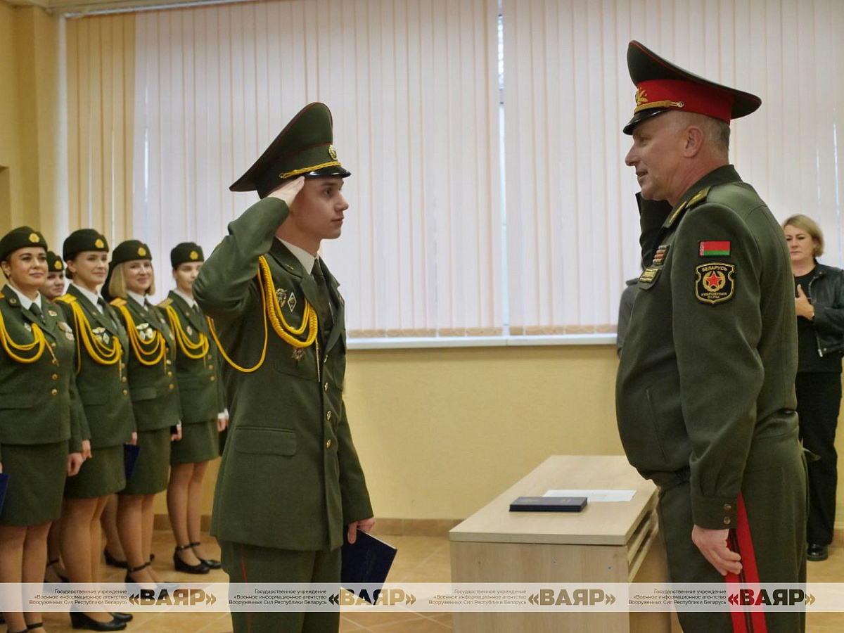 – Товарищи офицеры, сегодня мы вместе с вами проводим 38-й выпуск офицеров. В год 80-летия Великой Победы наш народ, Вооруженные Силы, отдавая дань подвигу старших поколений, делают все, чтобы обеспечить военную безопасность, сохранить суверенитет и целостность нашей страны. Уважаемые выпускники, сегодня к офицерскому корпусу предъявляются очень высокие требования. Офицер должен быть образцом честного и добросовестного служения Родине, – подчеркнул генерал-майор Андрей Горбатенко. – В первую очередь вы должны быть патриотами. Людьми, которые служат во имя свободы своей страны, чести, своих близких и родных. С этого дня мы с вами должны сделать все для развития и процветания нашей страны, чтобы в нашей стране были мир и спокойствие. Успехов вам в службе на благо нашей Родины Республики Беларусь.
