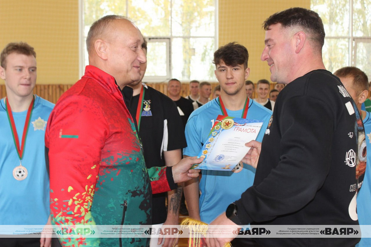 В награждении победителей и призеров состязания, а также лучших игроков команд и лучших игроков чемпионата, приняли участие командующий войсками Западного оперативного командования генерал-майор Вадим Суров и председатель государственного учреждения «Спортивный комитет Вооруженных Сил Республики Беларусь» полковник Анатолий Ханевский.