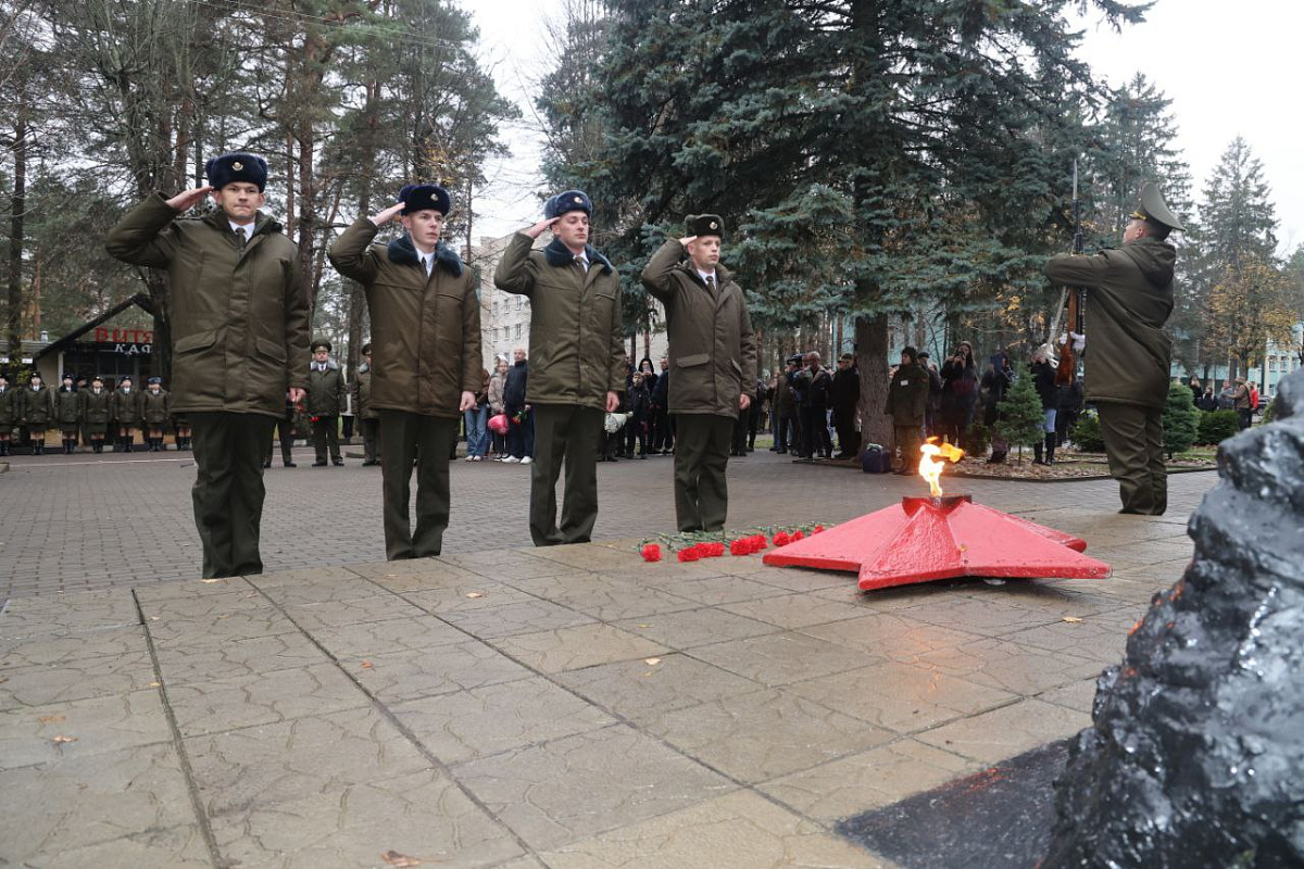 Военнослужащие прошли торжественным маршем, возложили цветы к Вечному огню на Аллее Героев.