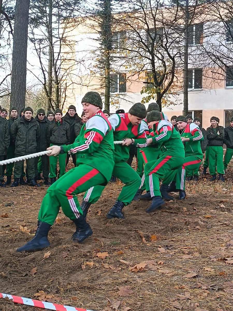 Военнослужащие соревновались в перетягивании каната, подтягивании на турнике, эстафете.
