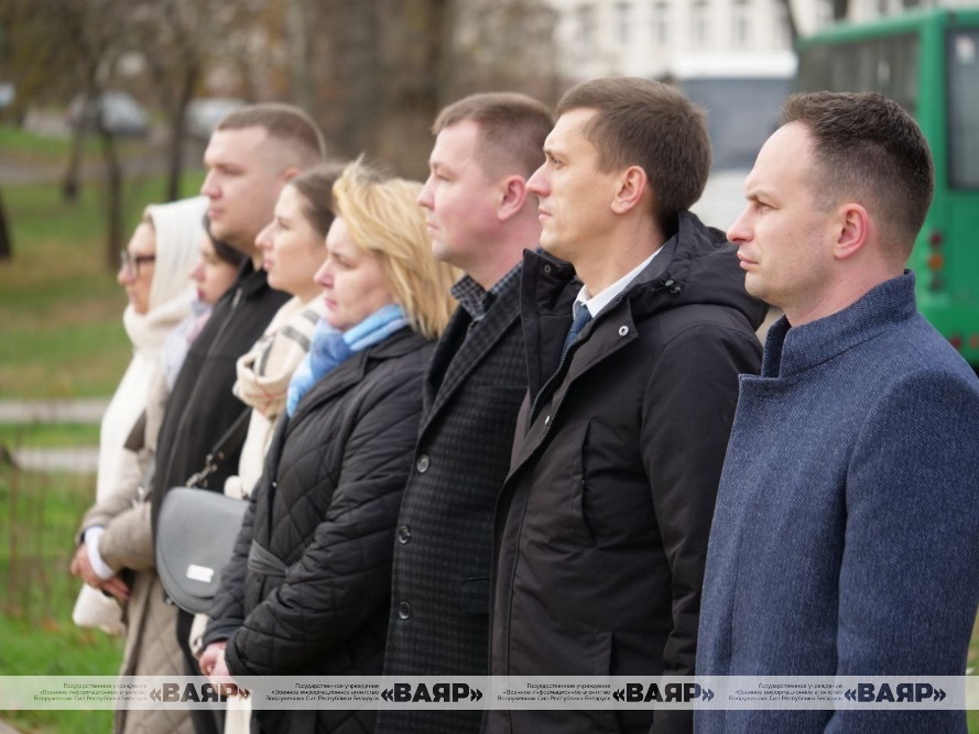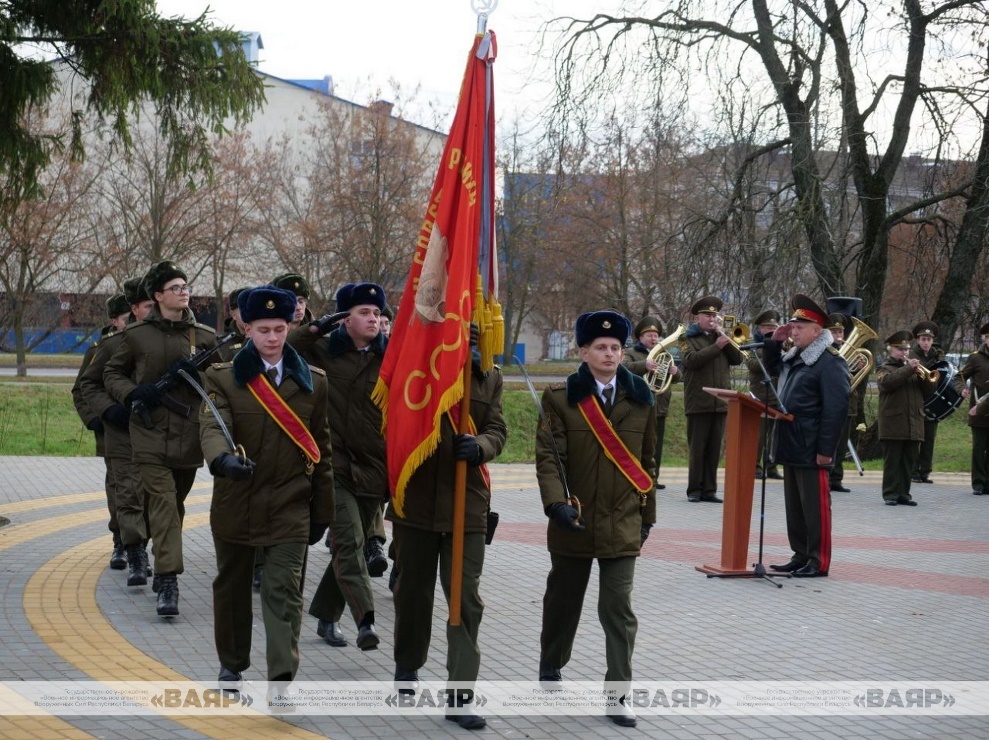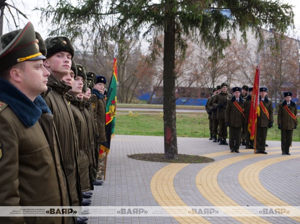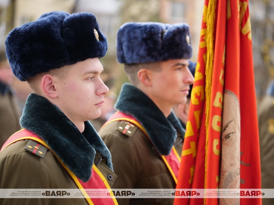 На церемонии также присутствовали ребята из военно-патриотического клуба «Гарнизон», который работает на базе 51-й гвардейской артиллерийской бригады. Рядом с ними стояли курсанты Военной академии Республики Беларусь — будущие офицеры-артиллеристы.