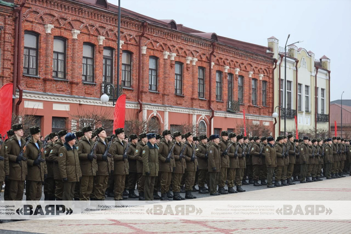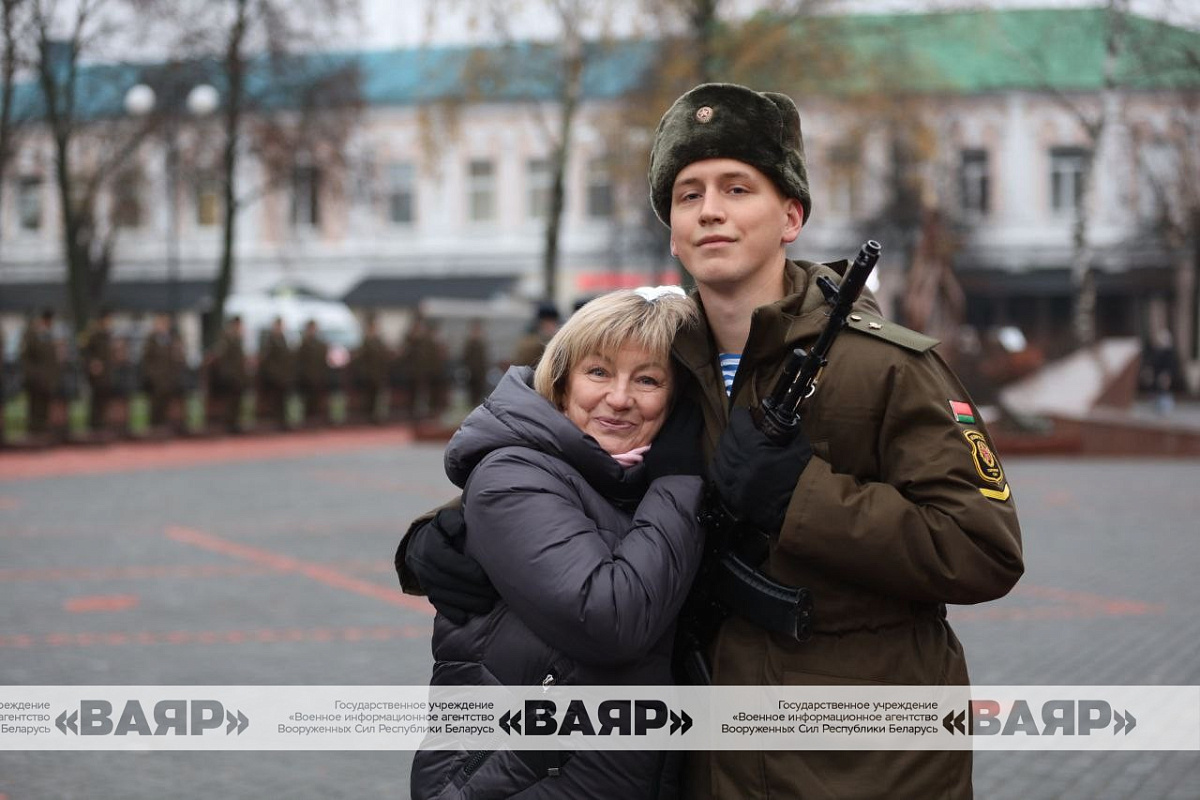 – Для жителей города Бобруйска это особенный день. Сегодня более двухсот военнослужащих из числа нового пополнения принимают присягу. Это военнослужащие, которые будут проходить службу в реактивном артиллерийском полку и зенитном ракетном полку, которые в этом году вошли в состав сил специальных операций.