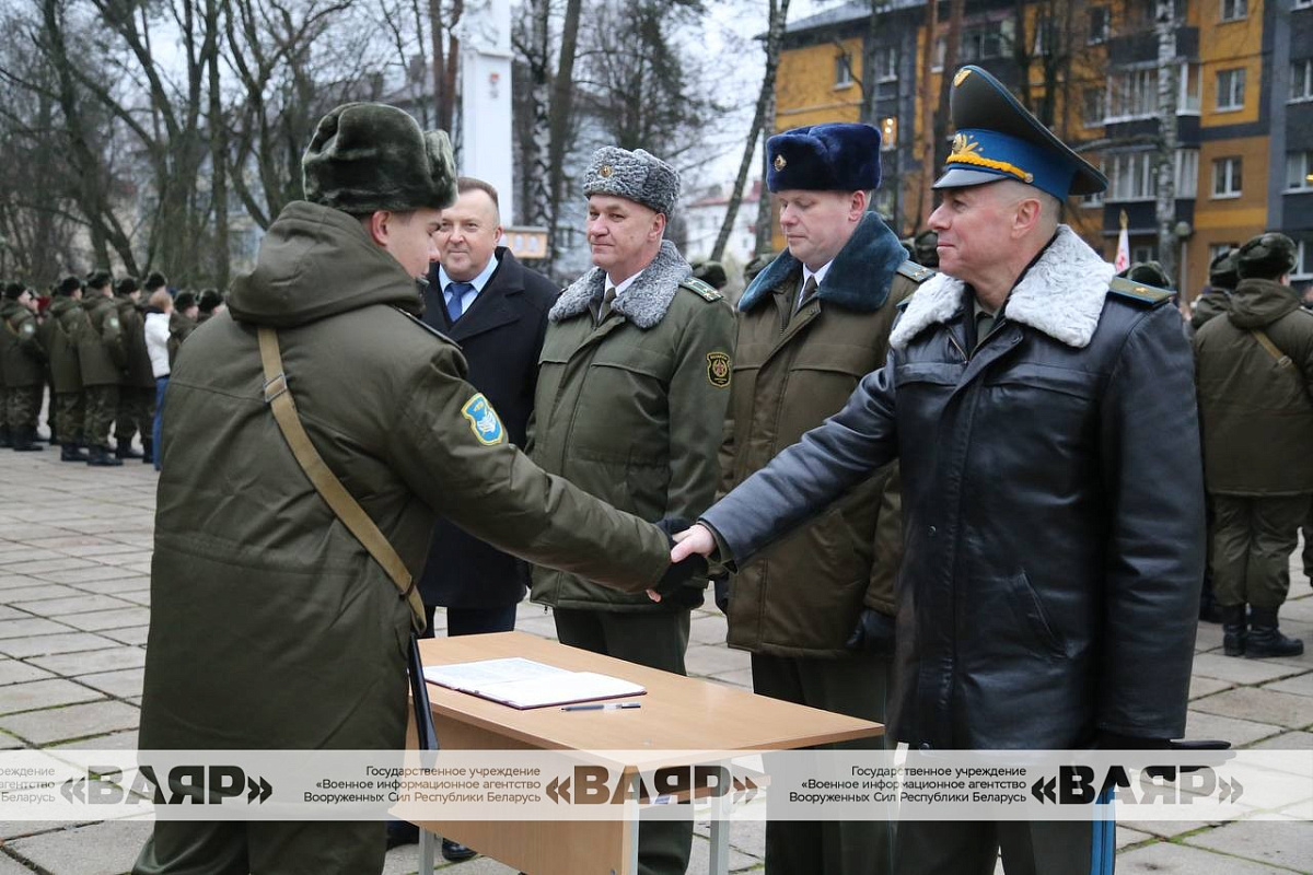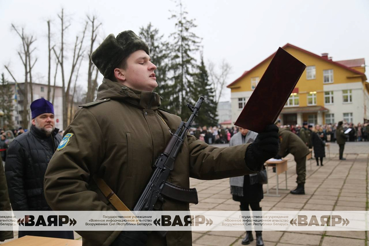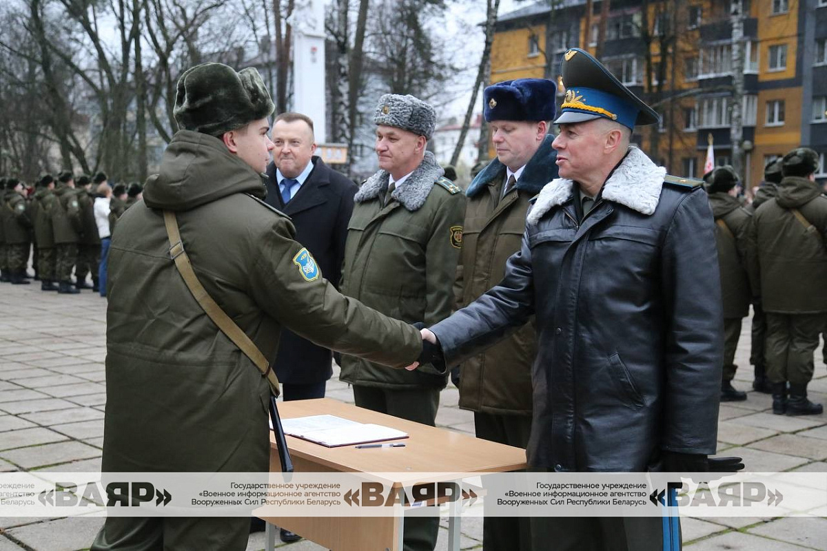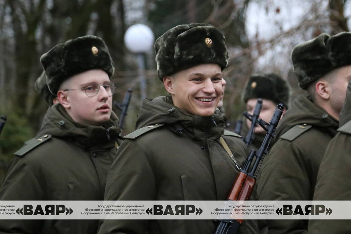 Дорогие новобранцы! Поздравляю вас со знаменательным событием в вашей жизни – днем принятия Военной присяги. Желаю вам достойной службы, крепкого здоровья, мира, благополучия. Пусть клятва, произнесенная сегодня вами перед лицом командиров, родных и близких, товарищей, сопровождается ратными делами на благо сильной и процветающей Беларуси!