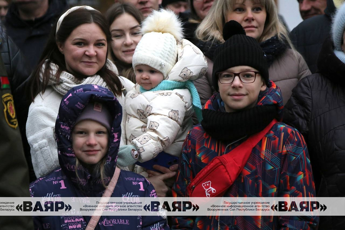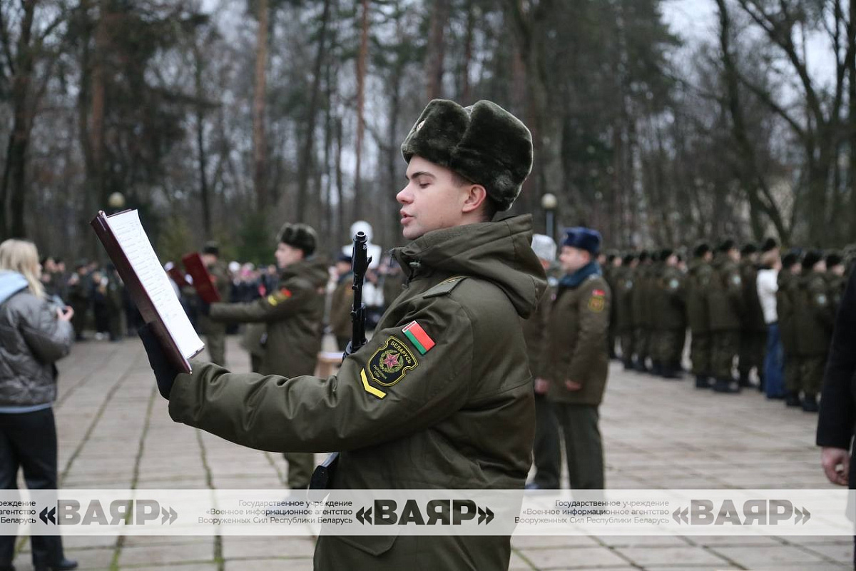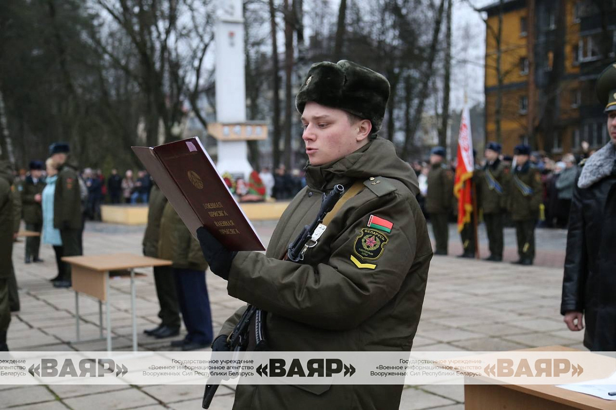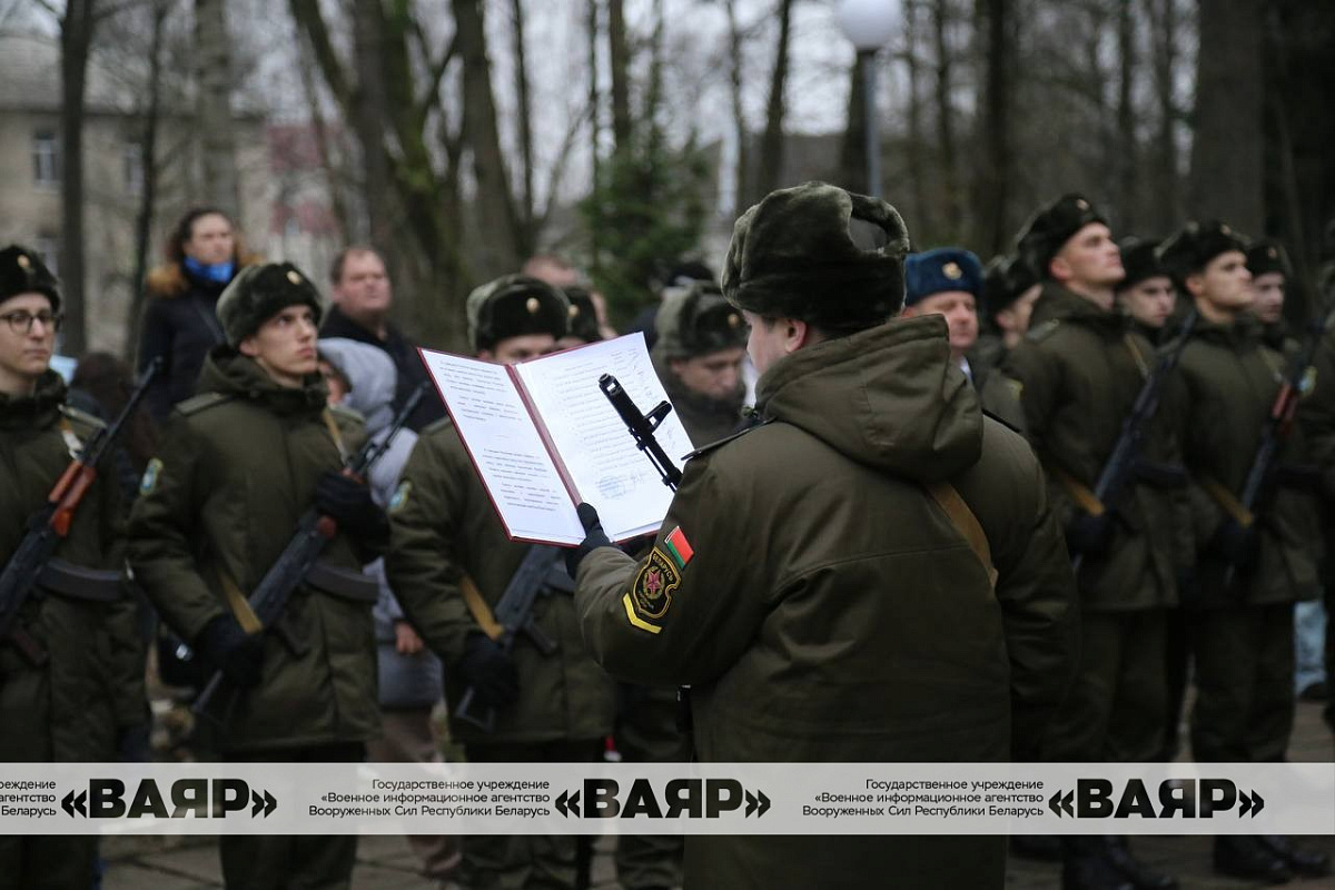 Дорогие новобранцы! Поздравляю вас со знаменательным событием в вашей жизни – днем принятия Военной присяги. Желаю вам достойной службы, крепкого здоровья, мира, благополучия. Пусть клятва, произнесенная сегодня вами перед лицом командиров, родных и близких, товарищей, сопровождается ратными делами на благо сильной и процветающей Беларуси!