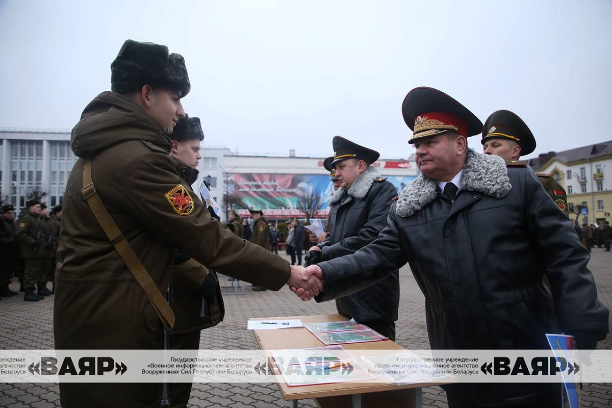 Сегодня перед своими командирами, товарищами, родителями вы поклянетесь верности народу Республики Беларусь. Я уверен, что это знаковое событие войдет в биографию каждого из вас как особый рубеж личной ответственности за защиту и безопасность нашей Родины. Помните: именно сегодня на ваши плечи ляжет ответственность за мирную и безопасную жизнь ваших родных и близких, ваш дом и нашу Родину.