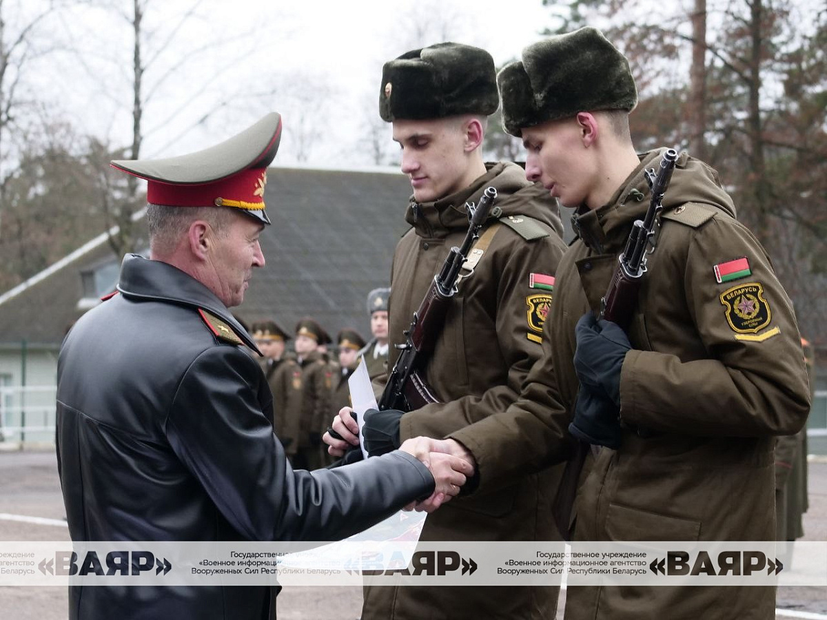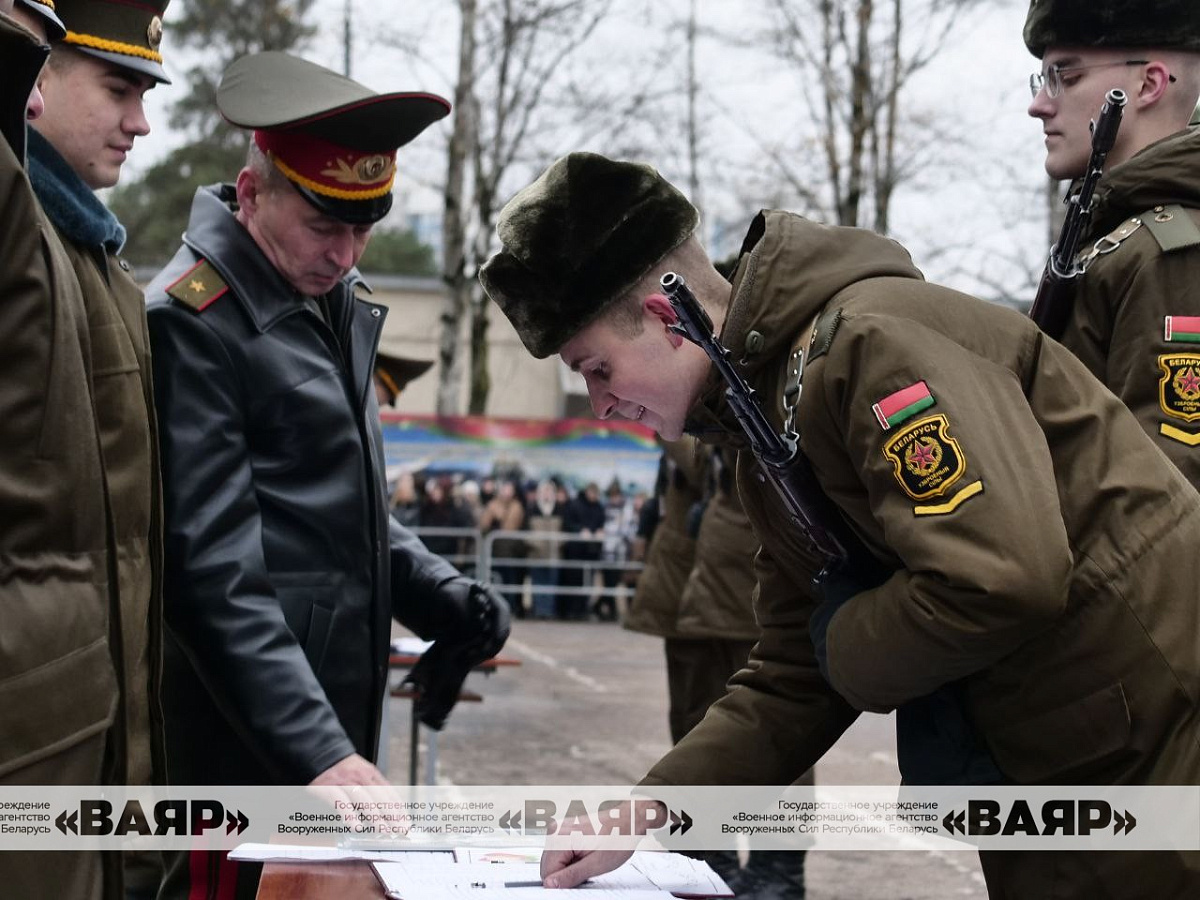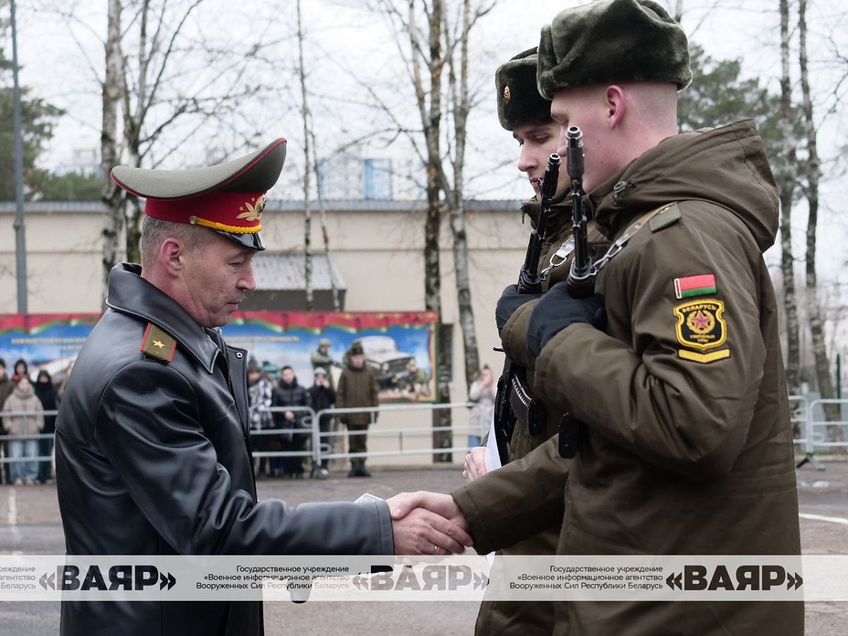 С важным событием новобранцев поздравили первый заместитель начальника Генерального штаба Вооруженных Сил генерал-майор Андрей Матиевич, почетный солдат 361 боо (ЦОВУ) генерал-майор в отставке Михаил Панков, их родные и близкие.