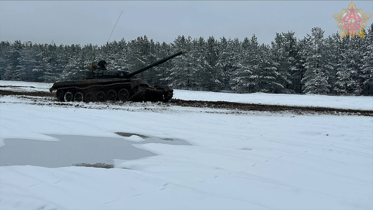 На 227-м общевойсковом полигоне курсанты четвертого курса общевойскового факультета Военной академии Республики Беларусь сдают экзамен по вождению танка Т-72Б.