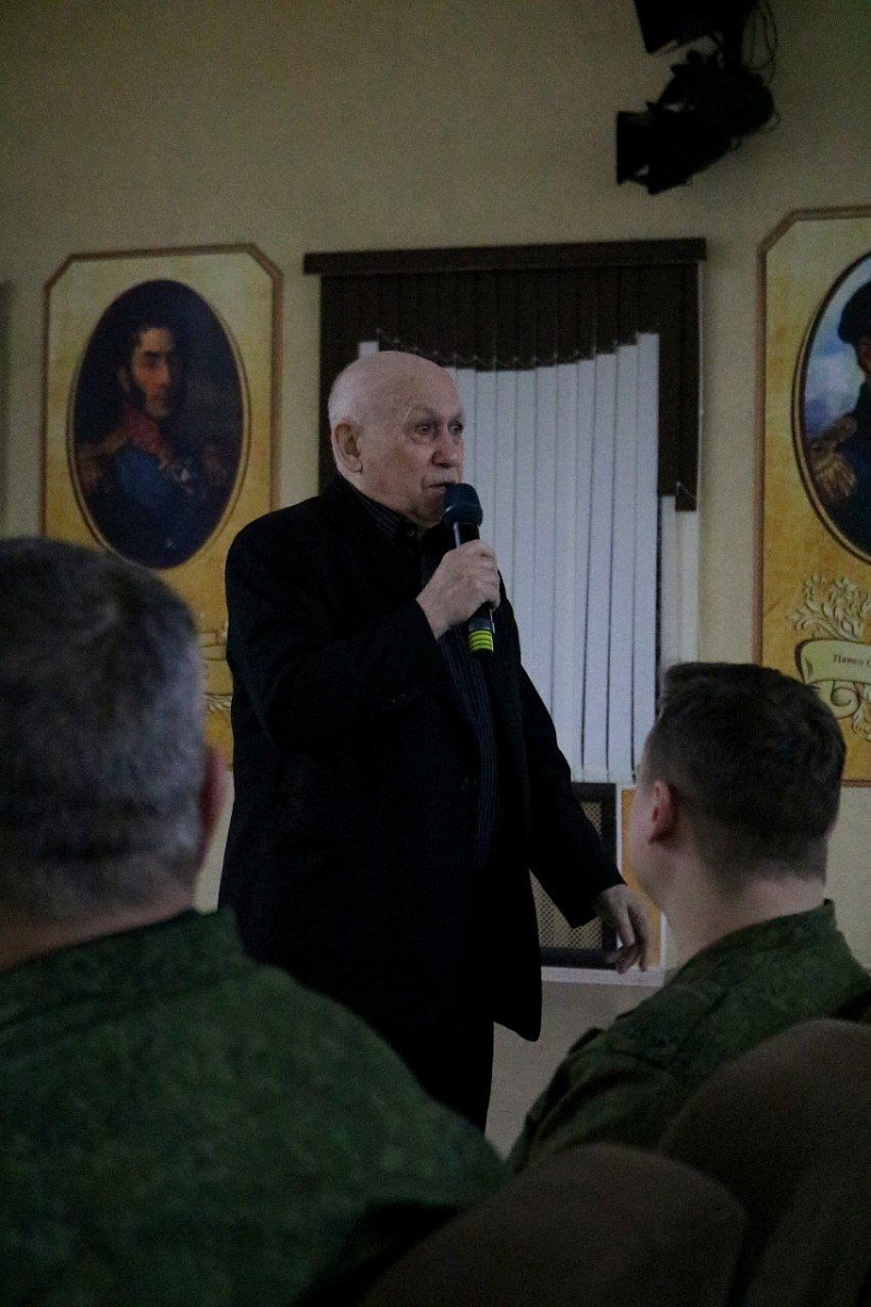 Эдуард Семёнович поделился душевными историями из своего богатого творческого пути, а также подарил личному составу яркие творческие номера.