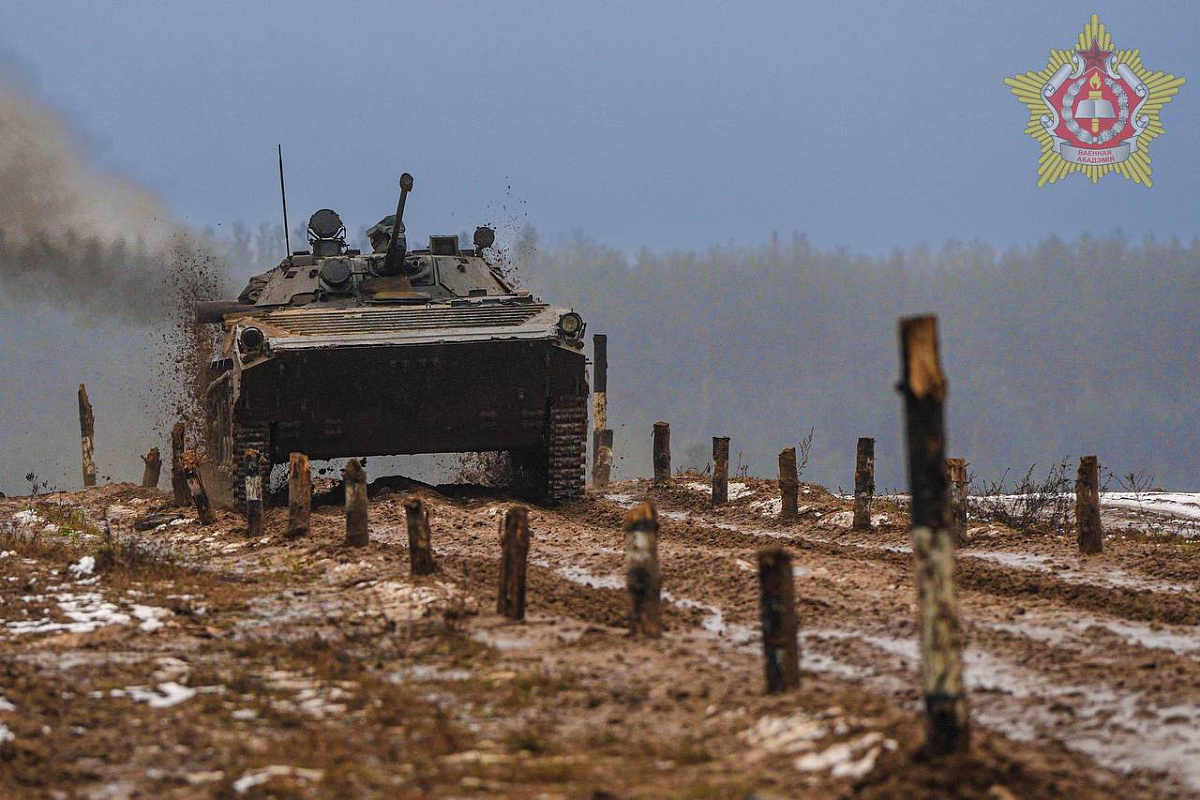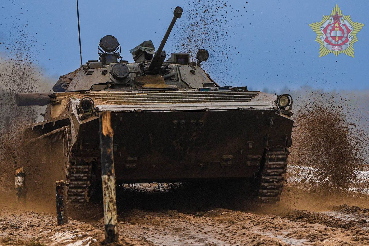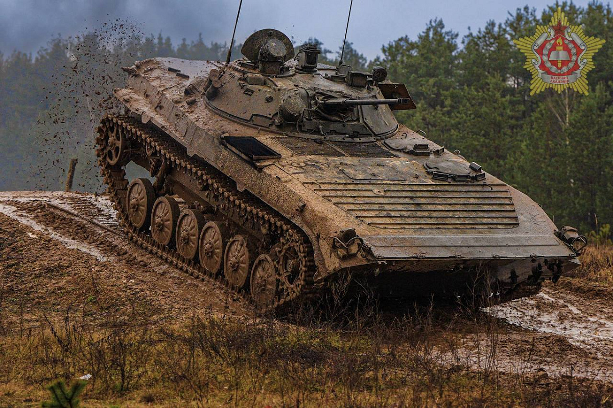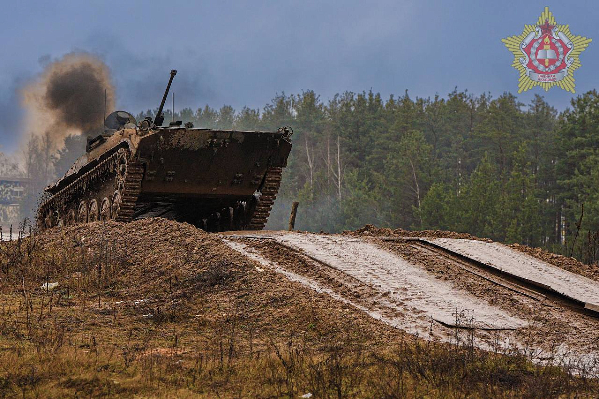 Курсанты четвертого курса общевойскового факультета Военной академии Республики Беларусь сдают экзамен по вождению БМП-2.