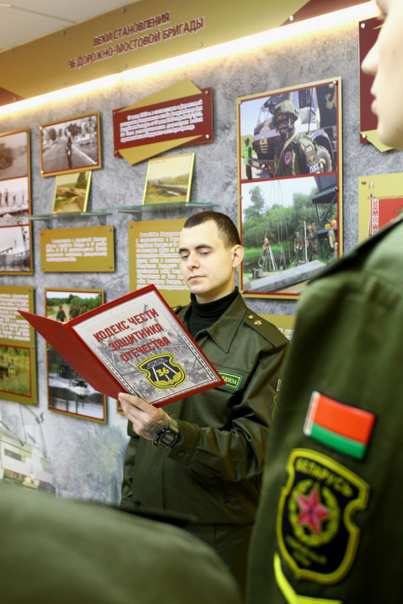 Военнослужащие из числа нового пополнения 36-й дорожно-мостовой бригады торжественно приняли Кодекс чести защитника Отечества.