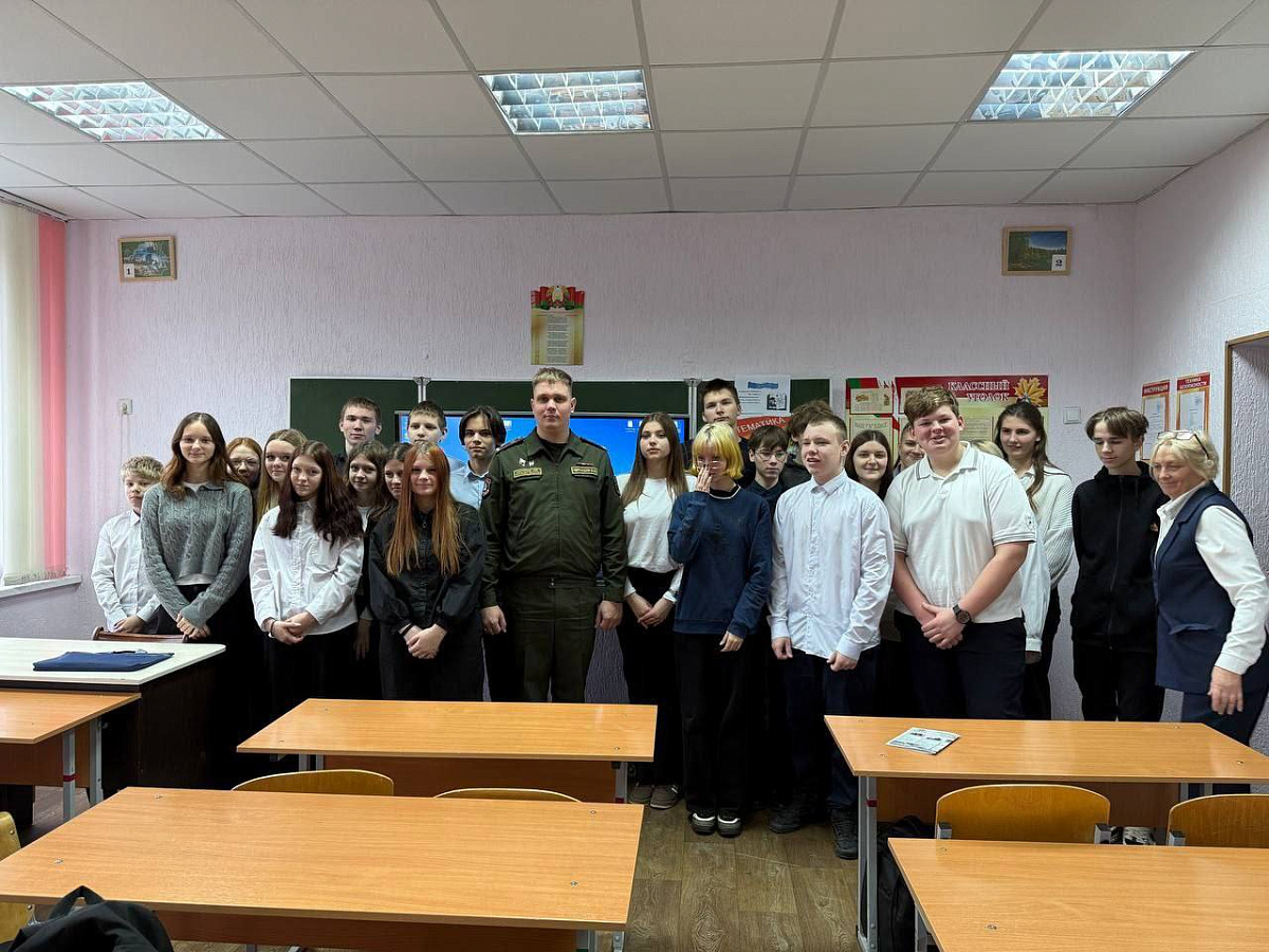В рамках мероприятий военно-патриотического воспитания с целью формирования активной гражданской позиции офицеры кафедры «Тактика и общевоенная подготовка» военно-технического факультета в Белорусском национальном техническом университете подполковник Юрий Гаврилик и подполковник Владимир Черкашин провели профориентационные беседы с учащимися 10-х и 11-х классов средних учебных заведений страны.