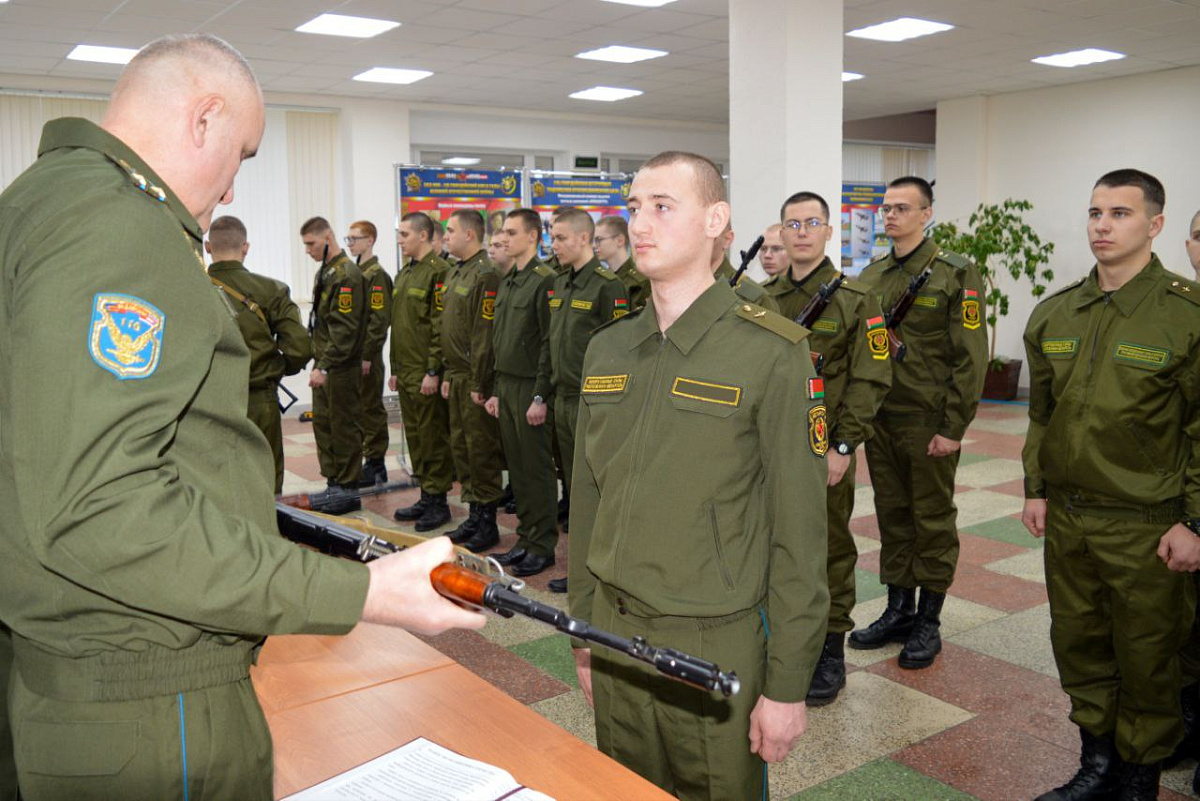 Солдаты дали обещание образцово исполнять обязанности военной службы, стремиться занять достойное место в боевой семье своего подразделения, уважительно относиться к государственной и военной символике.