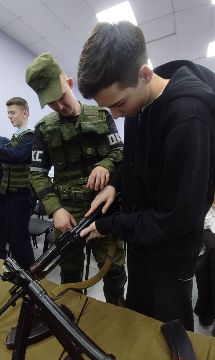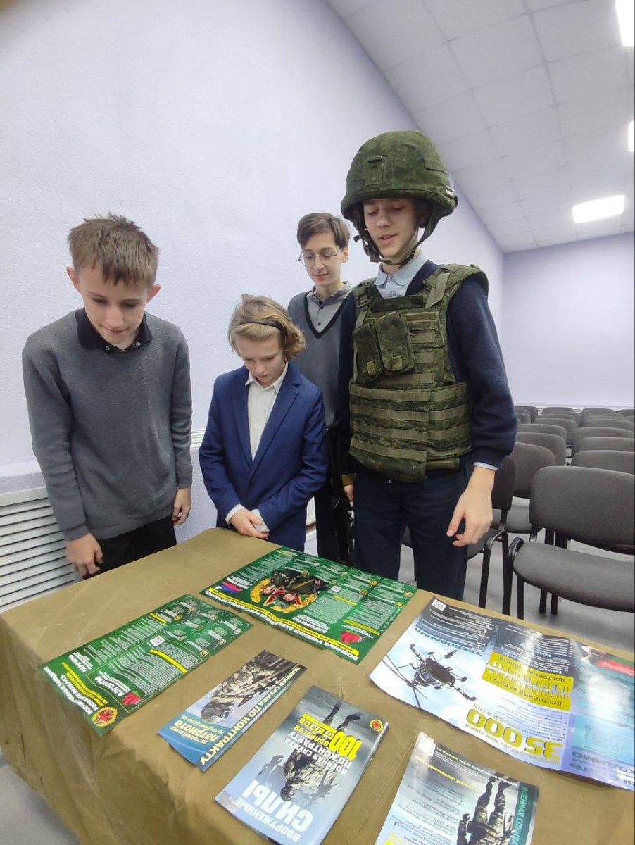 Офицер рассказал о значимости службы в Вооруженных Силах Республики Беларусь, ответил на вопросы школьников и представил видеоматериалы о военных учебных заведениях.
