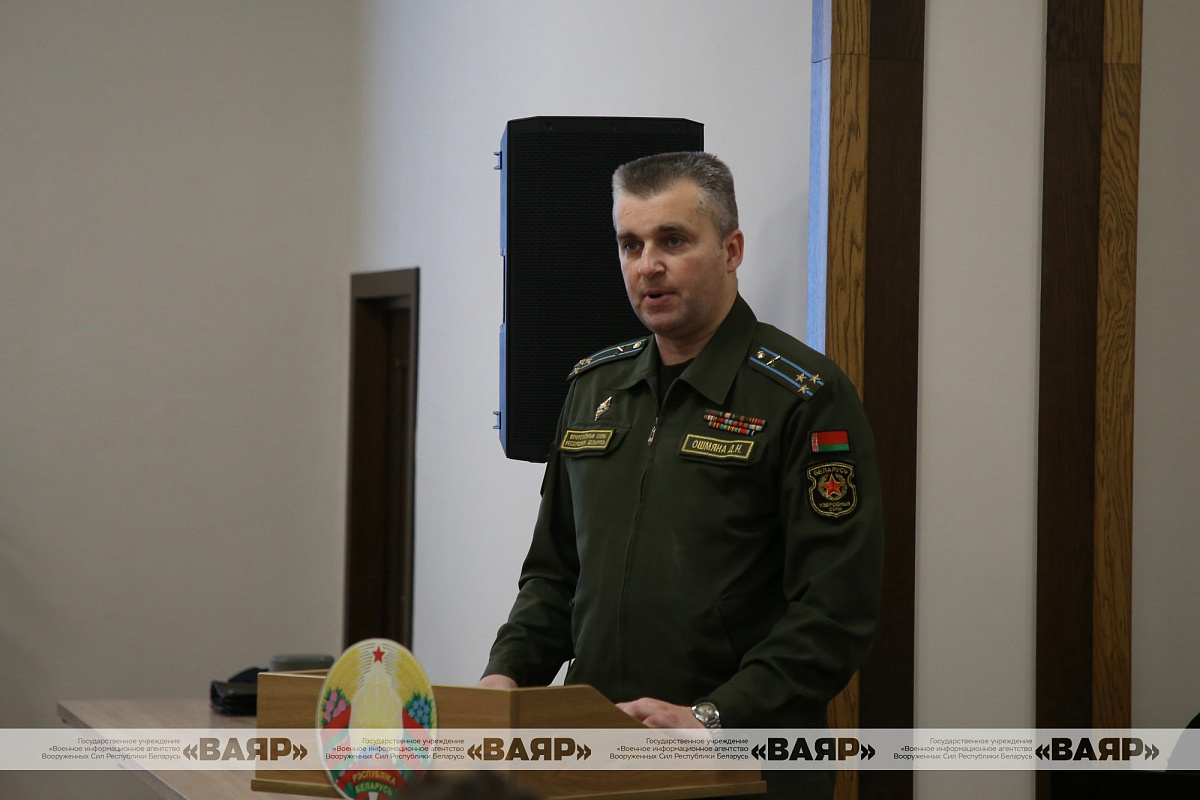 Заместитель начальника по учебной и научной работе факультета противовоздушной обороны полковник Дмитрий Ошмяна провел с ребятами профориентационную работу: рассказал об условиях поступления, специфике обучения в Военной академии Республики Беларусь и о перспективах военной службы.
